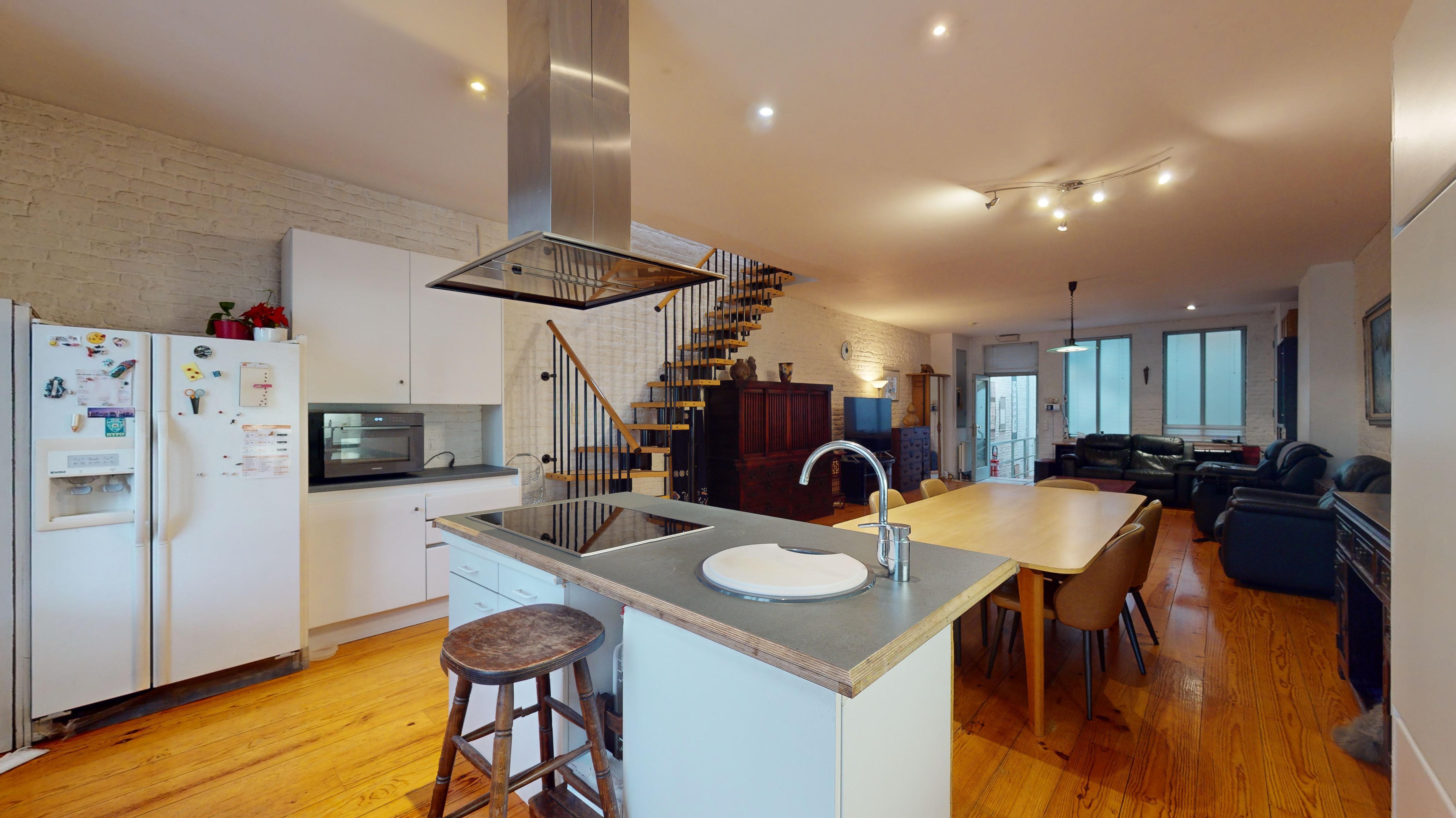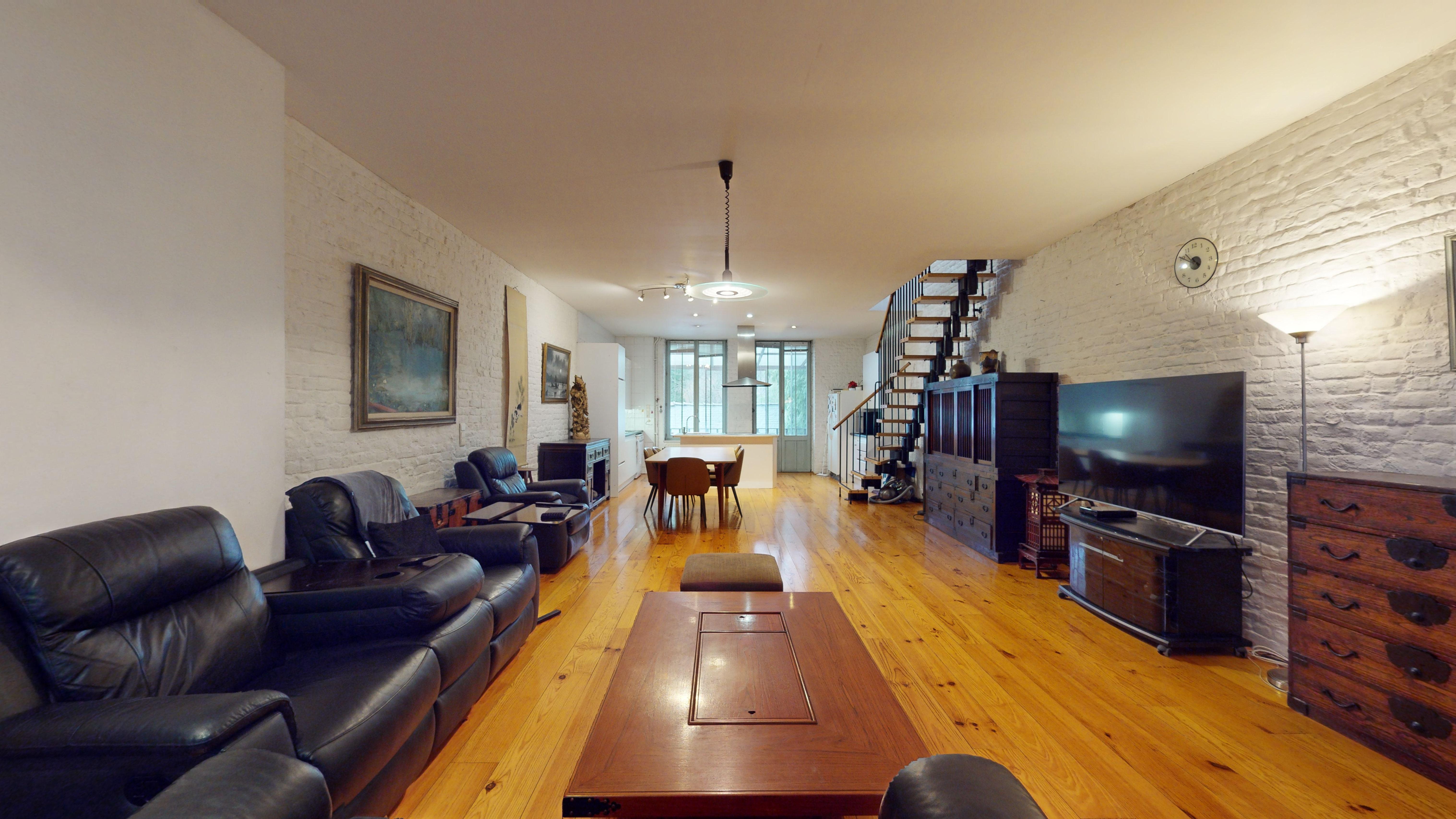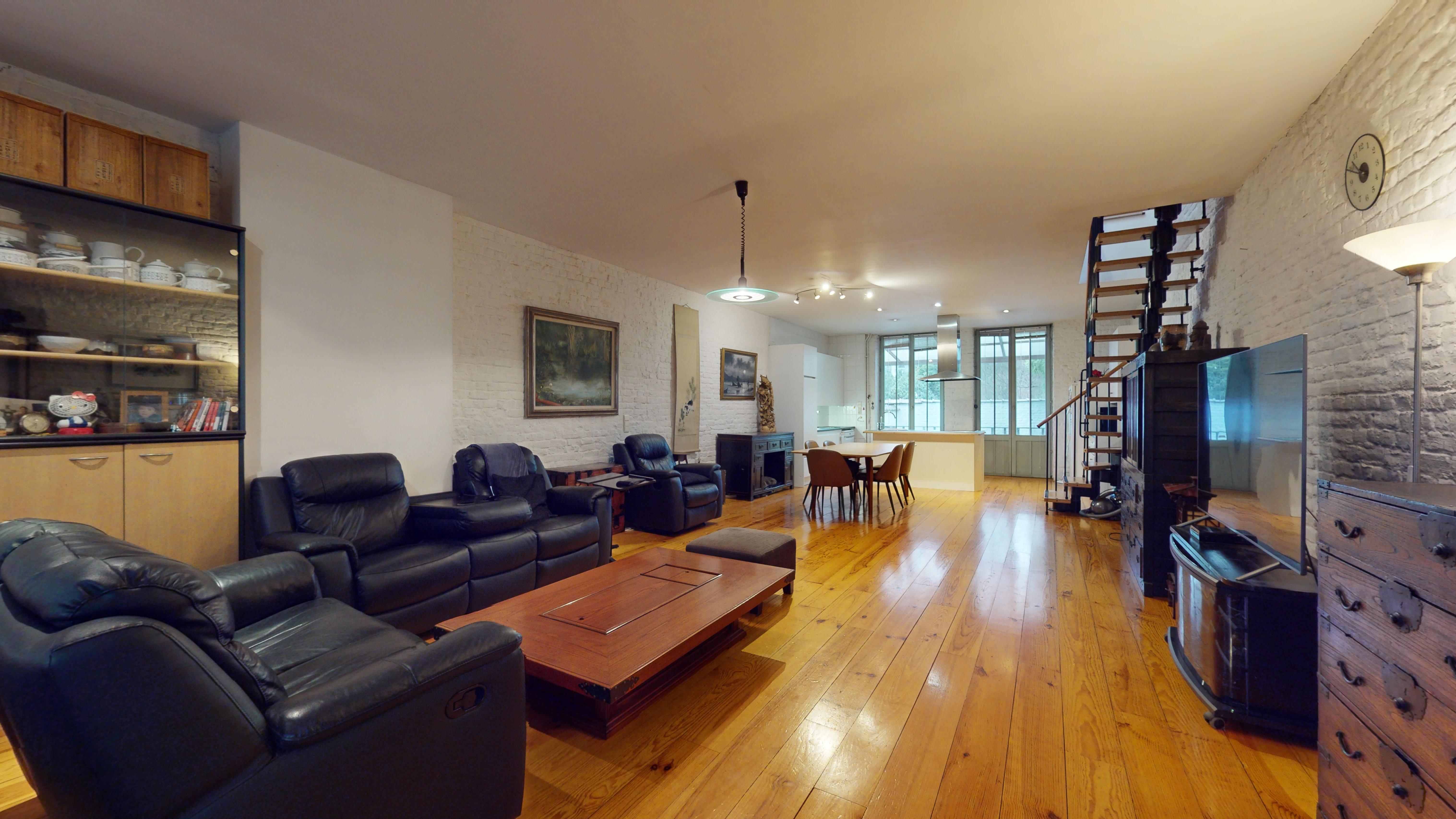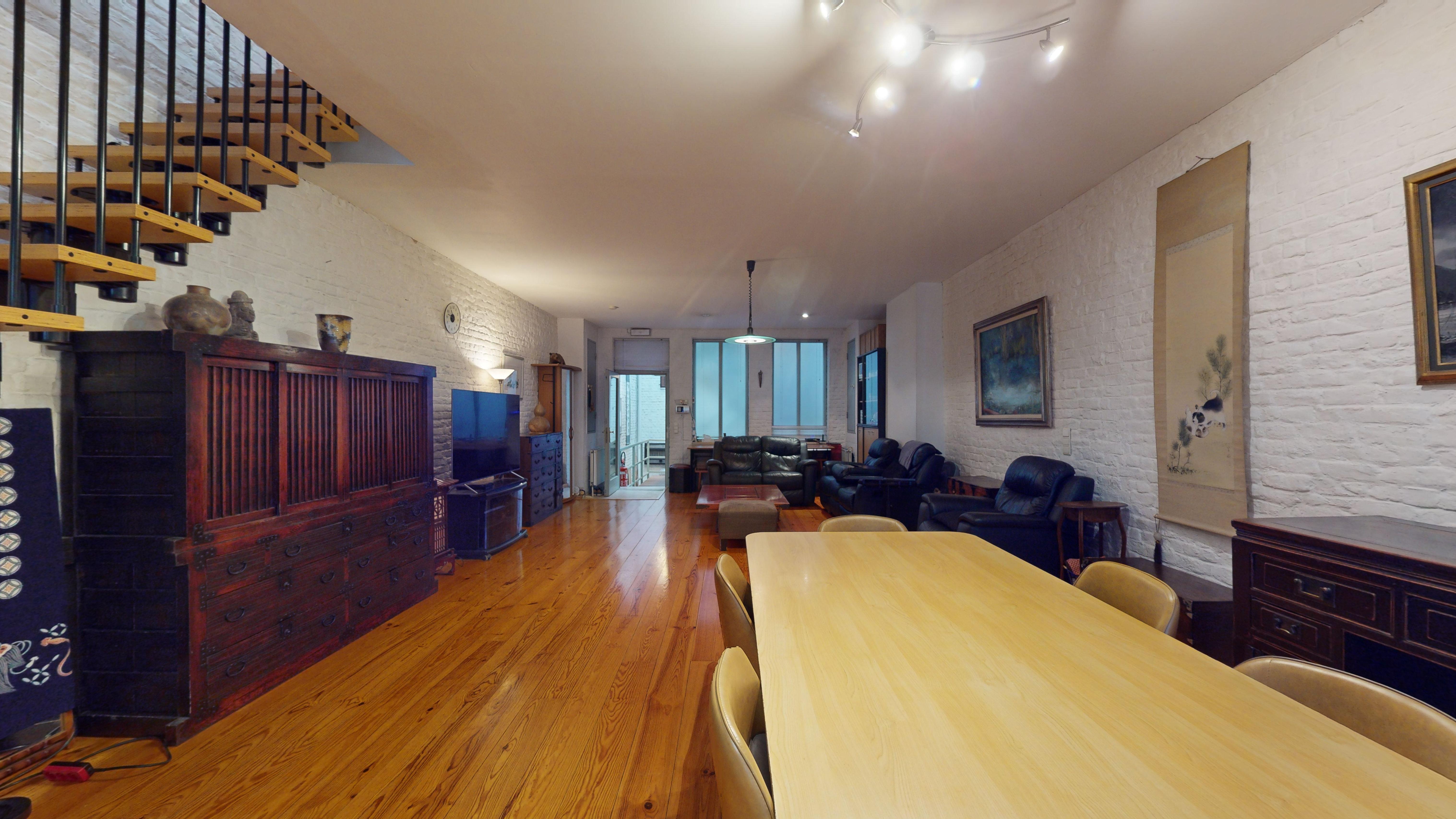 Aujourd’hui, l’avant du bâtiment, ainsi que le rez-de-chaussée est un commerce. Le milieu de l’immeuble (l’ancienne cour extérieure), est devenu un magnifique patio sur lequel se trouve un escalier (ouvert et lumineux), le tout protégé par une belle verrière.