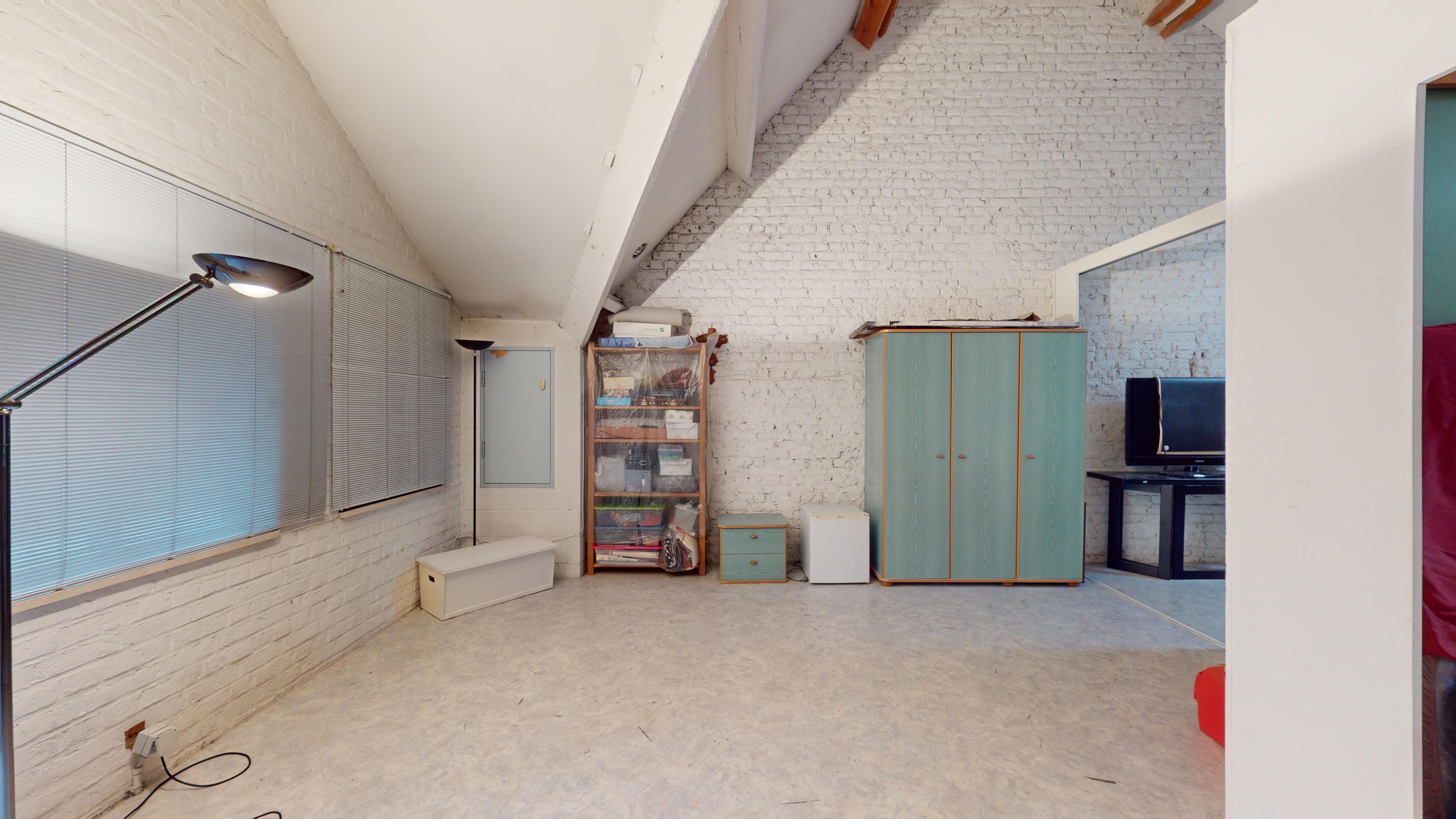 Au 2éme étage : 1 grande chambre (séparée en 2 petites), une salle de bain avec WC, une buanderie et une 2e chambre.