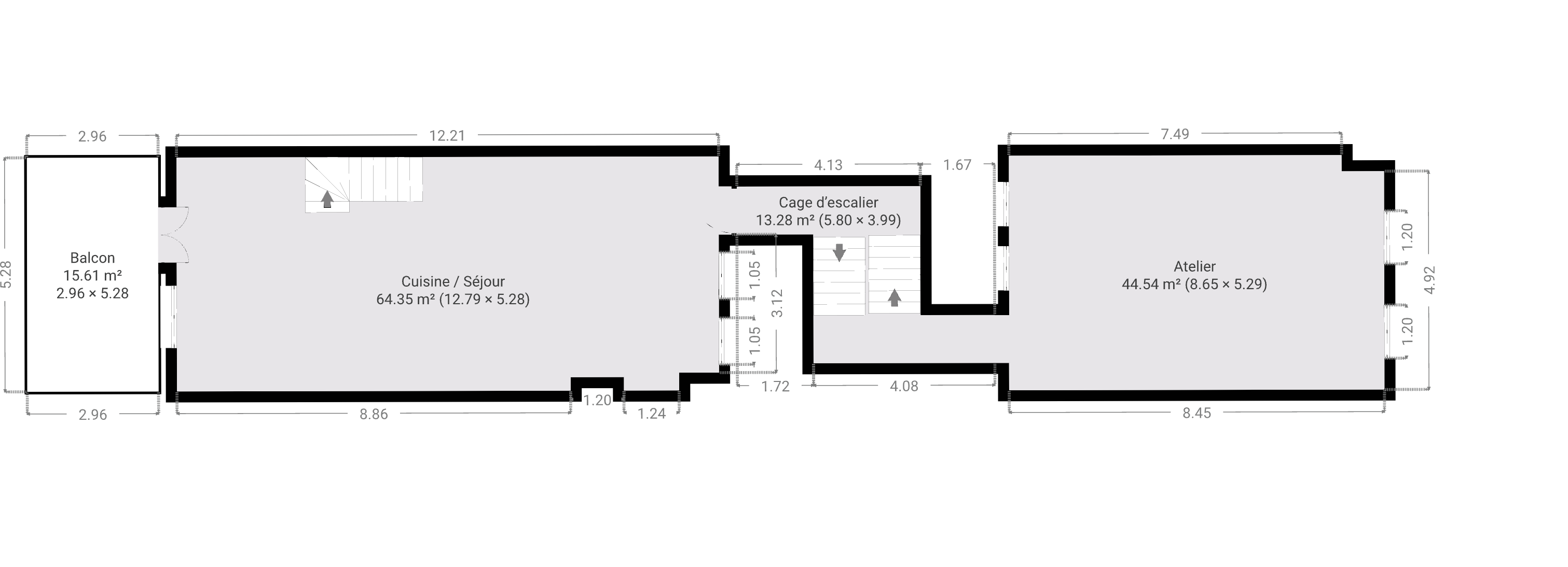 SURFACE : 12.73 m²