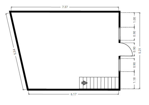 Enfin, le bâtiment arrière est un logement en duplex (au 1e étage et au 2e étage).Le logement est composé comme suit :