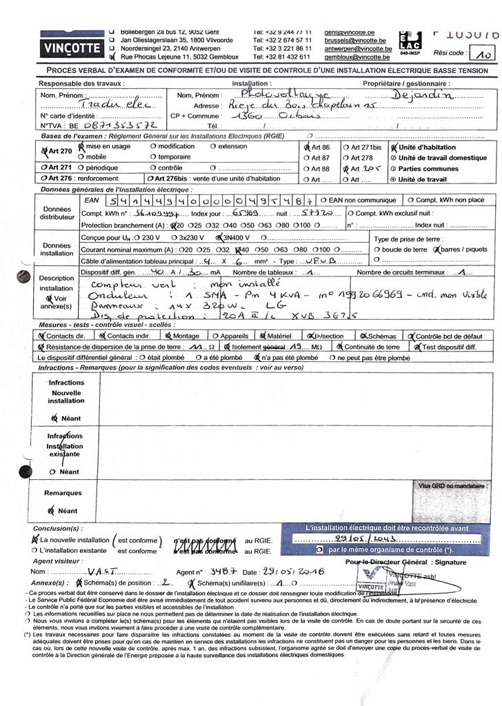 PROCES VERBAL D’EXAMEN DE CONFORMITE ET/OU DE VISITE DE CONTROLE D’UNE INSTALLATION ELECTRIQUE BASSE TENSION