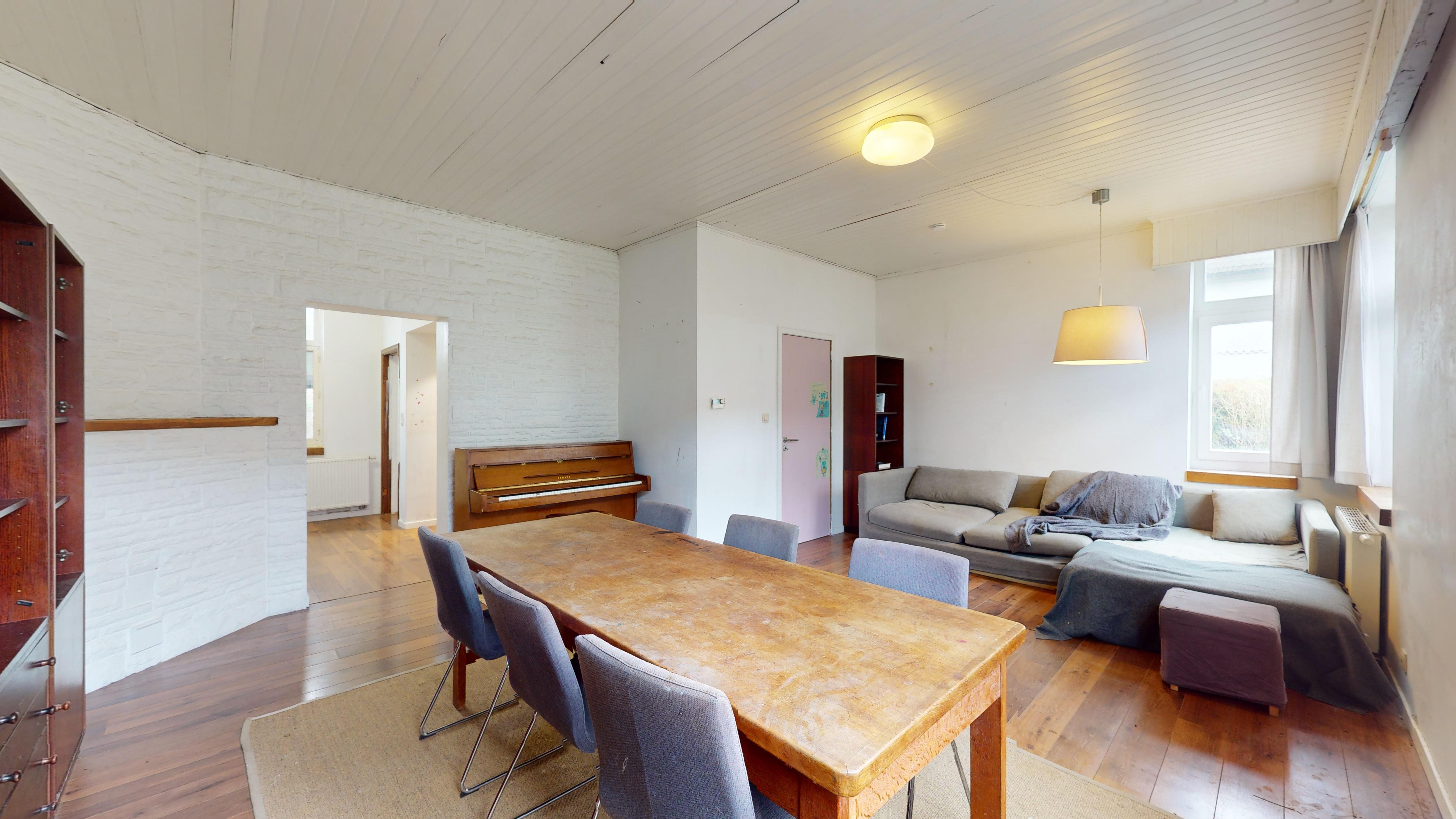 Au rez-de-chaussée : un hall d'entrée, un beau séjour de +/- 28m2, une cuisine de +/- 15m2, une salle à manger de +/- 19m2, s'ouvrant sur un petit jardinet orienté au Nord-Ouest, toilette.