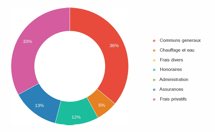 Ce tableau des charges comprend : Communs généraux et privés – Appel de fonds – Nettoyage et entretien - Assurances – syndic – frais de gestion