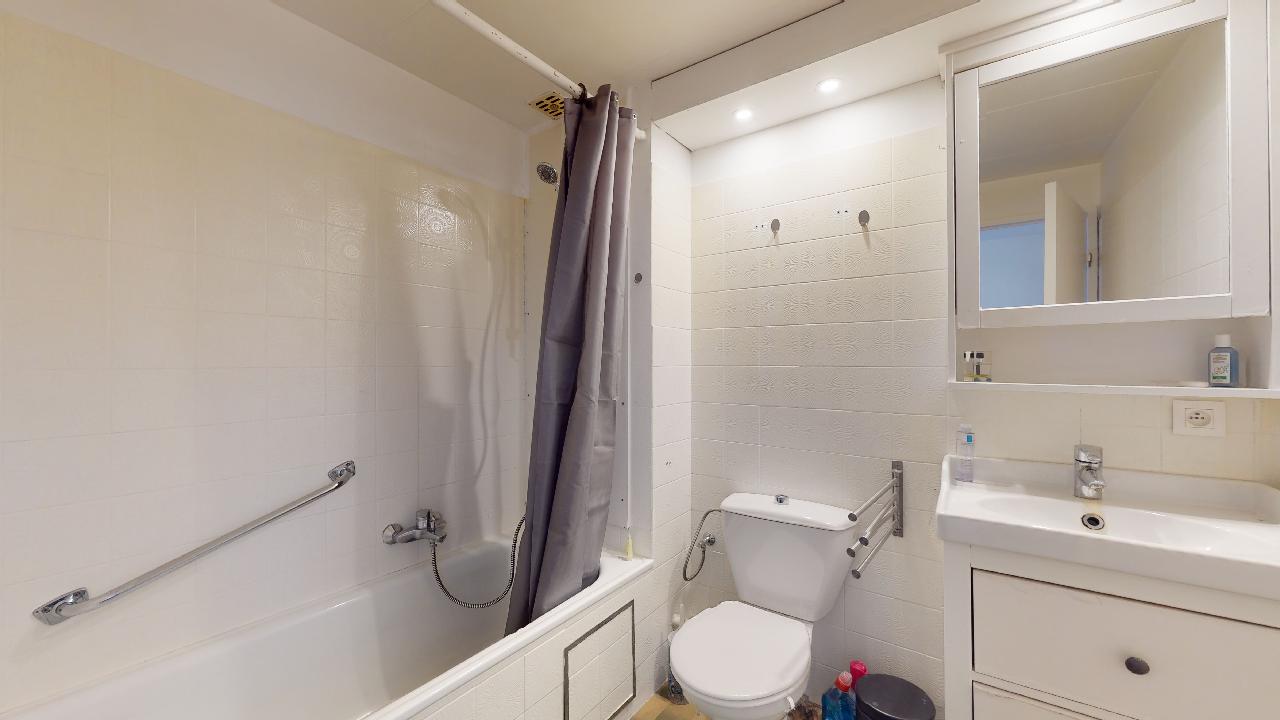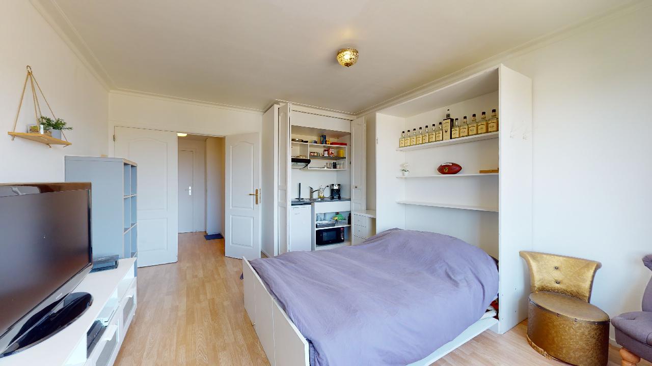 Joli studio composé d'un hall d'entrée, une salle de bain (baignoire, meuble lavabo et WC) et d'une pièce principale avec lit escamotable et kitchenette (évier, induction, frigo).