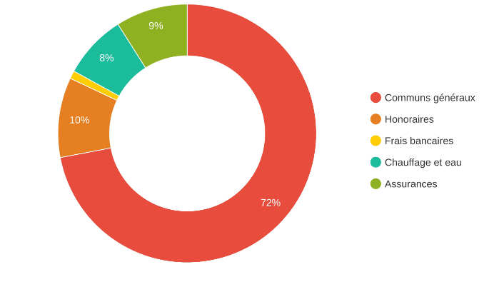 Ce tableau des charges comprend : Communs généraux et privés – Appel de fonds – Nettoyage et entretien - Assurances – syndic – frais de gestion