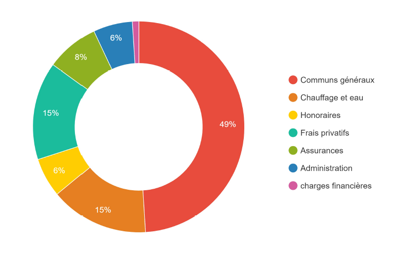 Ce tableau des charges comprend : Communs généraux et privés – Appel de fonds – Nettoyage et entretien - Assurances – syndic – frais de gestion