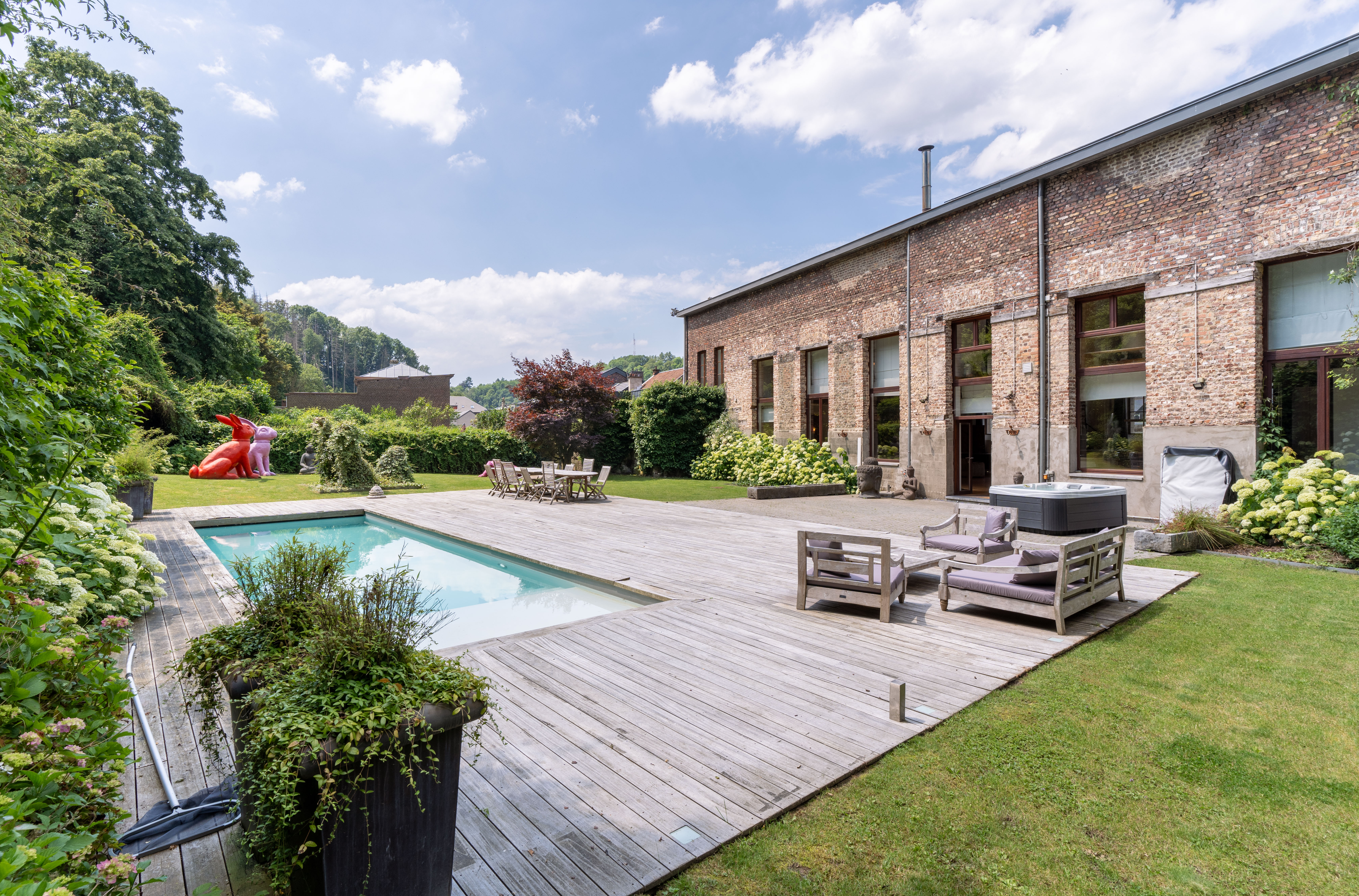 A proximité de la belle ville de Verviers, By the Way vous présente cet immense loft de 550 m² aménagé dans une ancienne école. De style industriel et doté de prestations haut de gamme dont une piscine chauffée et une salle de cinéma, ce bien se présente sur 2 étages et se compose comme suit: Au rez-de-chaussée, Hall d'entrée, 3 caves, local chaufferie, hall, réserve, garage et rampe d'accès latérale desservant le jardin. Au 1er étage: Hall avec WC, grande pièce de vie avec espace salon, espace salle à manger, espace billard, coin lecture et une cuisine professionnelle (2 pianos gaz 4 et 6 becs, 2 fours, armoire à vin, frigo américain, évier, micro-ondes, lave-vaisselle), salle cinéma, buanderie, 2 pièces de rangement. Espace extérieur comprenant 1 piscine chauffée, 1 jacuzzi, remise de jardin et un jardin arboré sans vis-à-vis, entièrement clôturé. Au 2ème étage: 2 Mezzanines, hall de nuit, 5 chambres (1 suite parentale avec salle de bains et dressing, 2 chambres avec placards et salle de bains commune, 1 chambre avec salle de douche, 1 chambre).