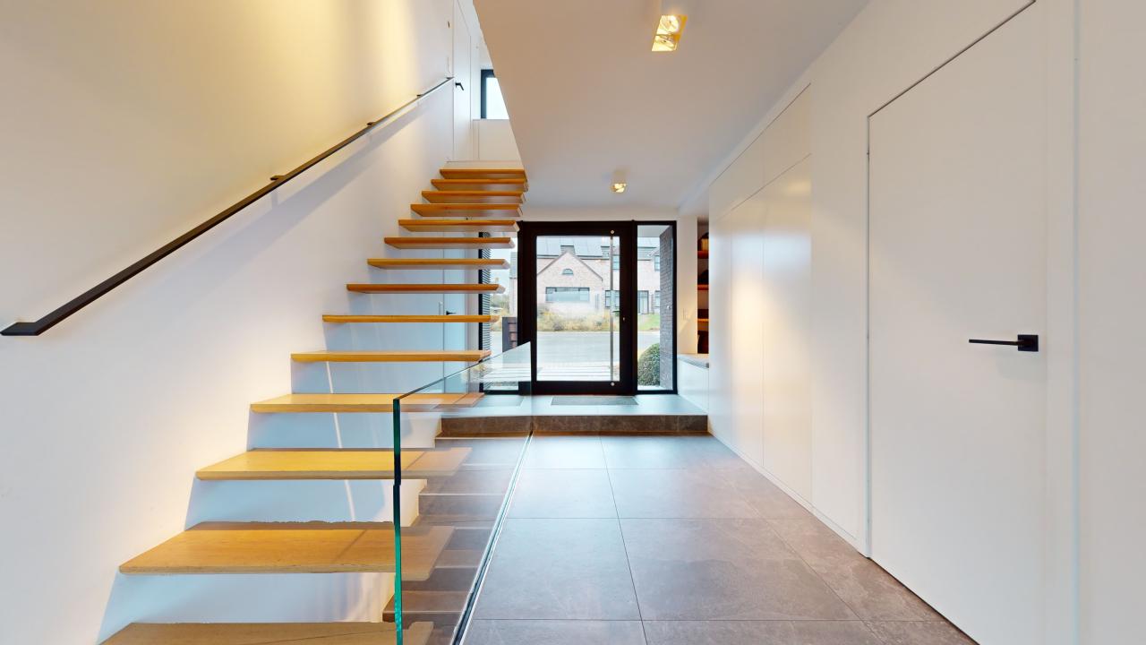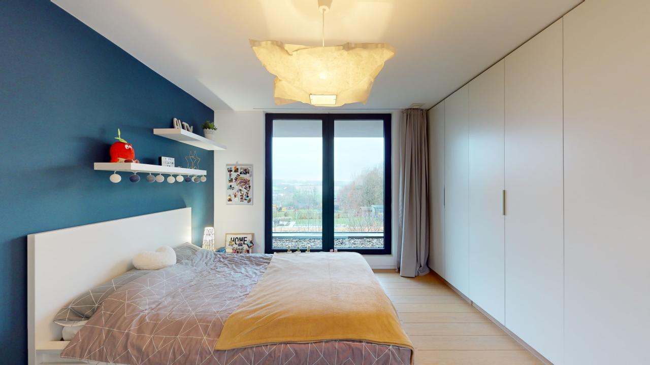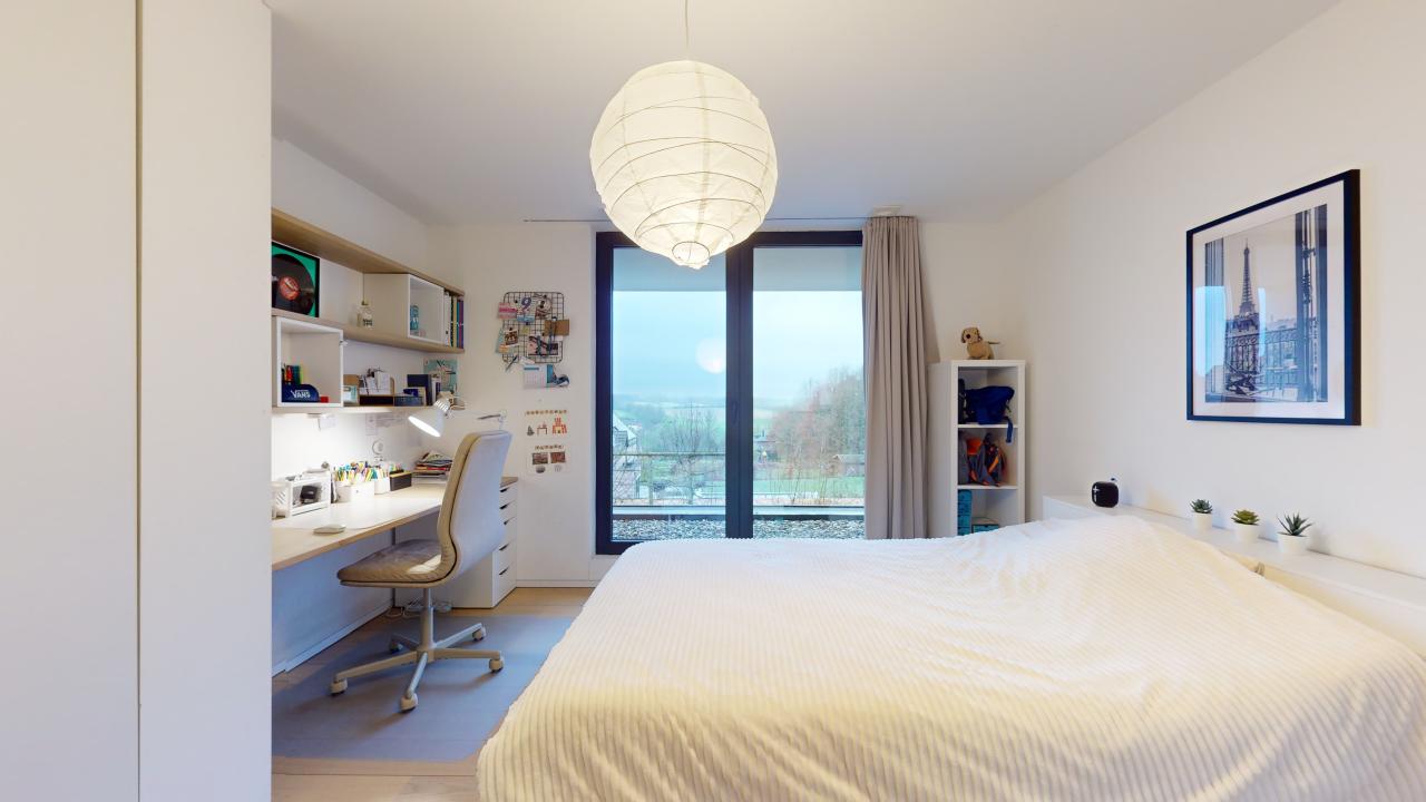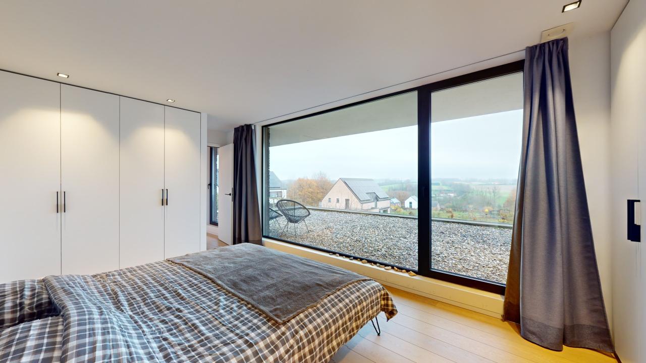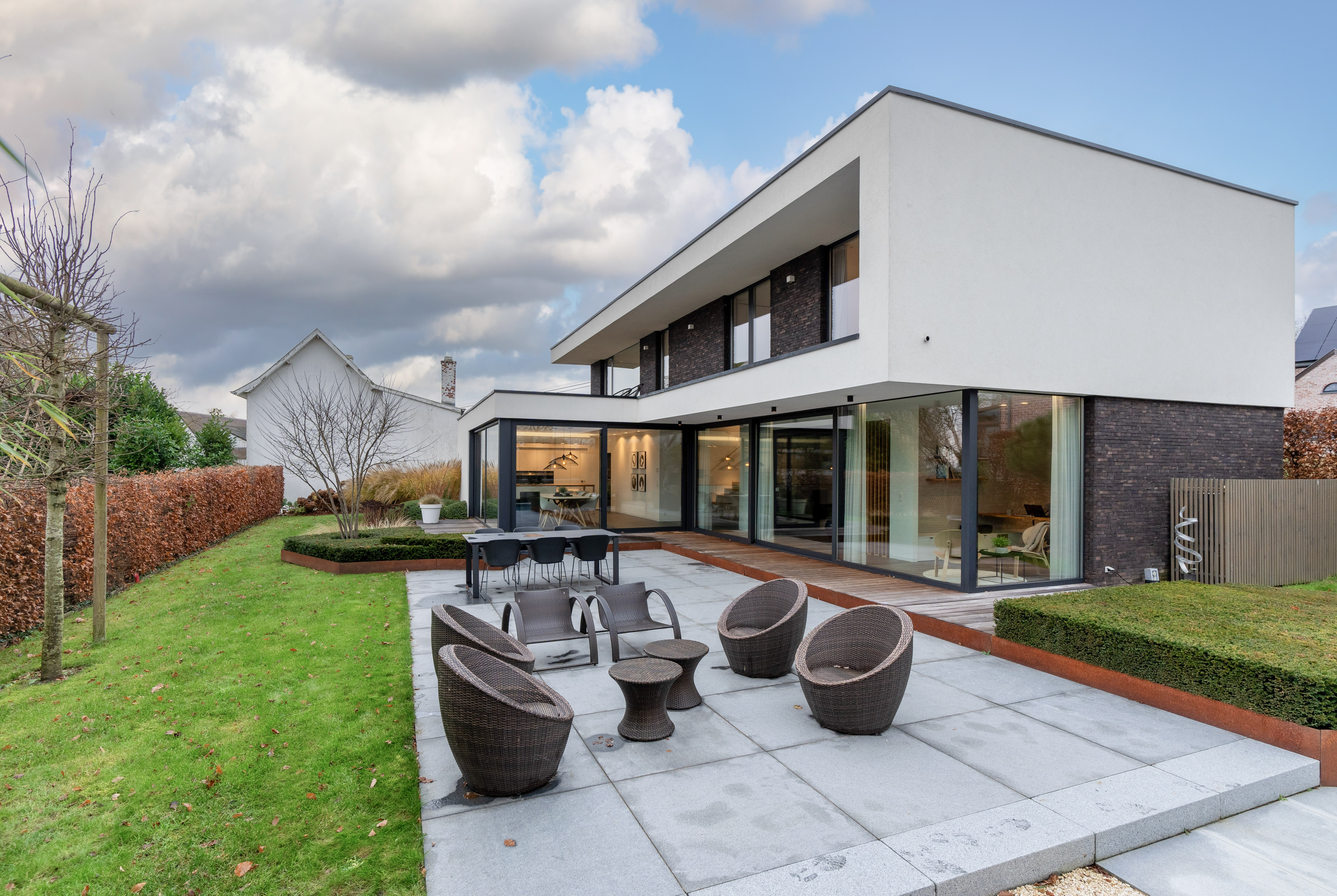 Entre campagne et village, découvrez cette villa contemporaine de 2017 située dans un clos privé. Alliant modernité, confort et performance énergétique remarquable, elle bénéficie d’une piscine chauffée avec volet, de finitions haut de gamme et de nombreux rangements intégrés. Au RDC, le hall d’entrée avec vestiaire et WC invités donne accès à une cuisine full équipée SIEMENS ouverte sur une salle à manger baignée de lumière grâce à ses baies vitrées. Le salon, équipé d’un HOME CINEMA, offre un espace convivial, tandis que le bureau attenant, avec vue sur le jardin, peut facilement devenir une 4e CH. Le garage double avec porte automatique complète ce niveau. À l’étage, la suite parentale propose une chambre avec vue imprenable sur la vallée, un dressing, une salle de bains avec douche italienne et une buanderie attenante. Le hall de nuit dessert deux chambres spacieuses avec placards intégrés, un coin bureau et la salle de douche. Un grenier, accessible par escalier escamotable, est aménageable au 2e étage. À l’extérieur, le jardin clôturé orienté sud comprend une piscine chauffée entourée d’un solarium, d’une terrasse, d’un cabanon technique et d’espaces paysagers soignés. Energies : chauffage au sol par pompe à chaleur, 24 panneaux solaires, boiler thermodynamique, citerne d’eau de pluie de 10 000L. PEB A et électricité conforme.