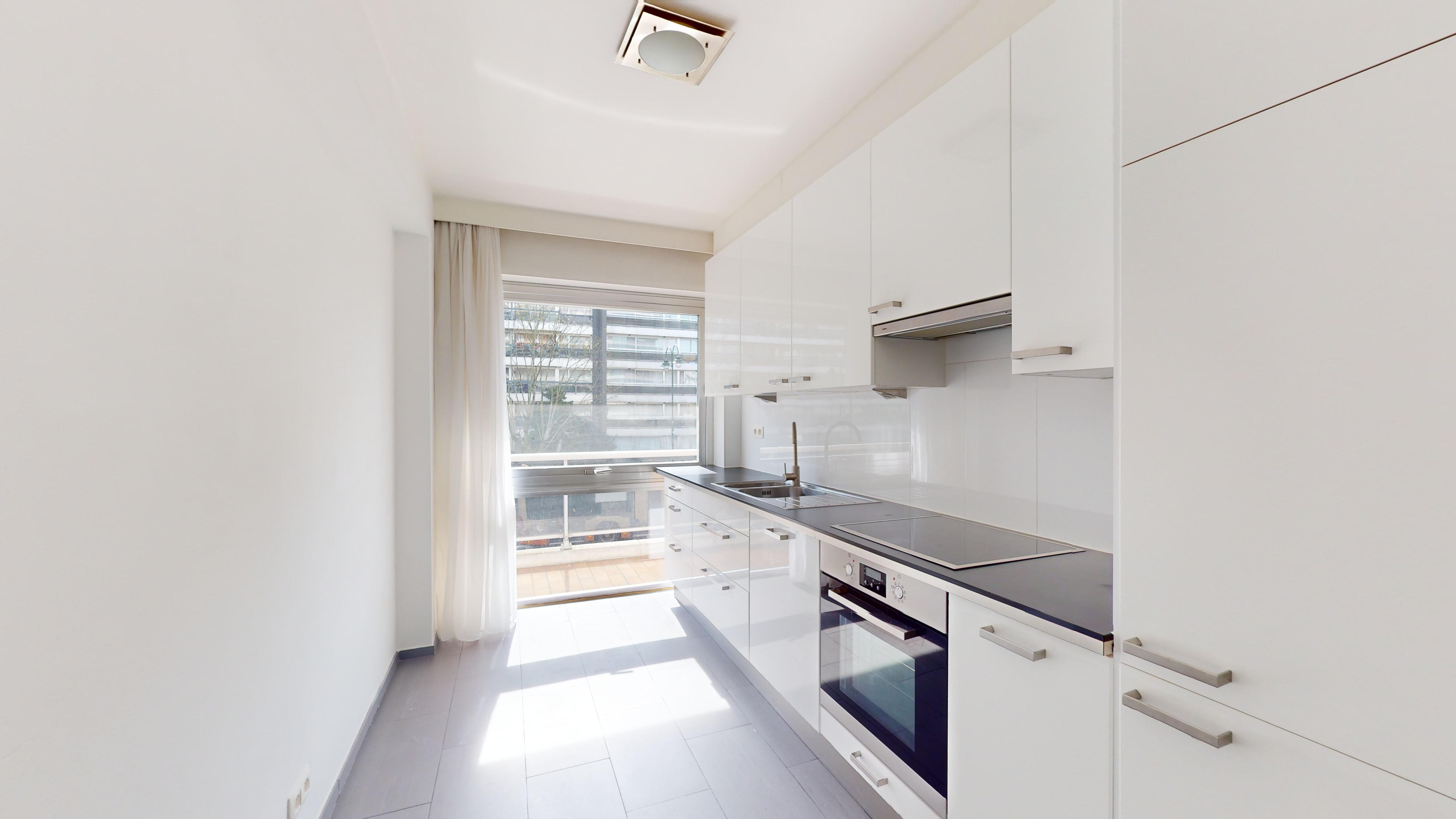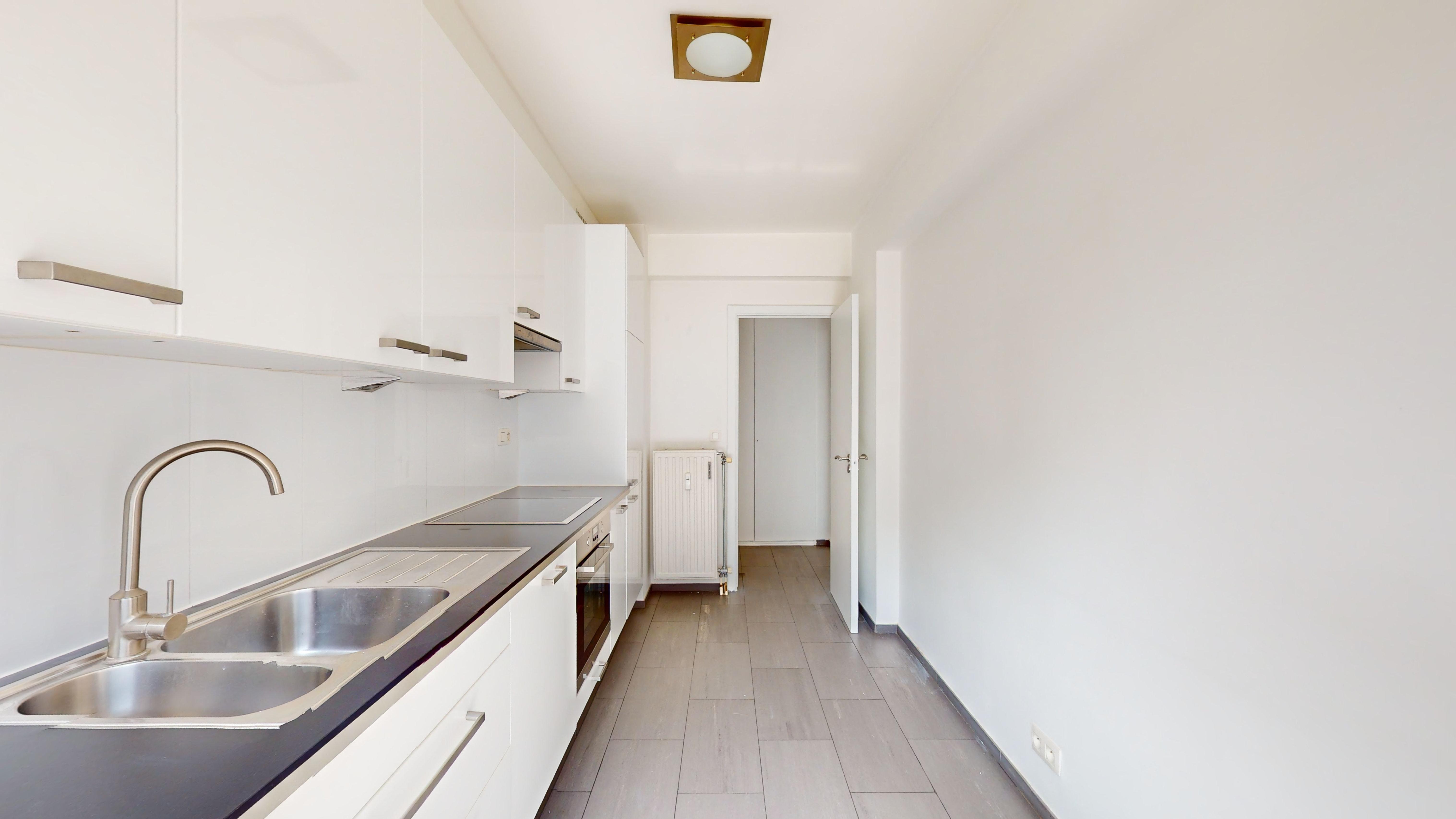 BytheWay a le privilège de vous présenter cet appartement situé dans la résidence Oxford et composé d'un hall d'entrée avec vestiaire, deux chambres, un séjour lumineux, une cuisine séparée équipée, une salle de douche, une toilette séparée, une terrasse sur toute la longueur de l'appartement, une cave. L'appartement est en très bon état. Possibilité d'acquérir un garage au prix de 30.000 euros. L'électricité est conforme . Le PEB est excellent, il est B. L'appartement se situe au premier étage d'un immeuble de 9 étages . Copropriété saine. Charges mensuelles de +/_ 310€(provisions pour les frais de la copropriété, syndic, concierge, chauffage privé, eau chaude privée ....). A proximité des transports en commun, et de toutes les facilités , immeuble calme .
