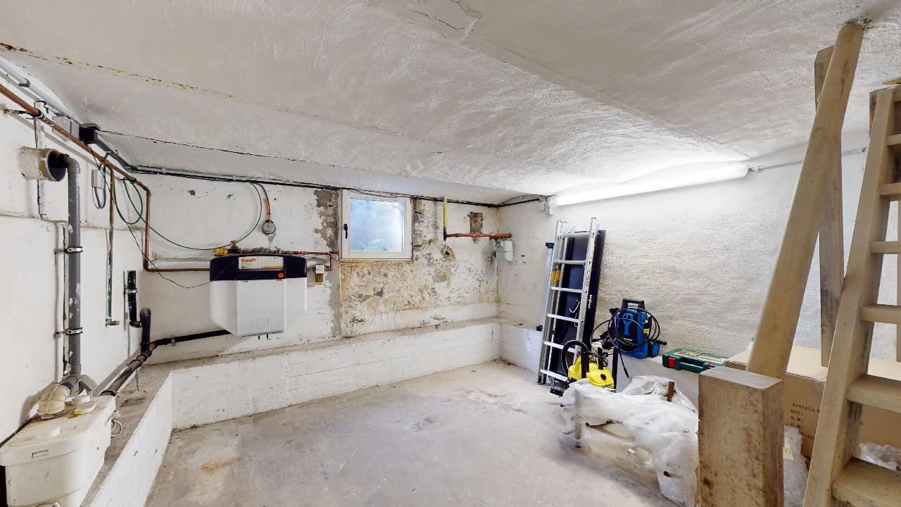 Au rez-de-chaussée, il y a une salle de stockage technique où se trouve la boîte à fusibles. La chaudière murale au gaz se trouve dans la salle de stockage accessible par une chambre.