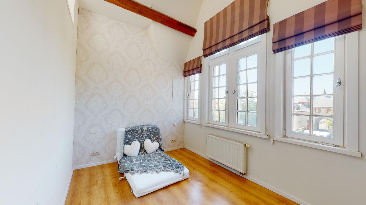 Les fenêtres du rez-de-chaussée et du premier étage sont encore en simple vitrage. Une fenêtre supplémentaire a été placée à l’intérieur. Cependant, cette fenêtre supplémentaire est également un simple vitrage (vraisemblablement du verre « securit ») qui ne contribue que très peu à l’effet isolant. Cependant, l’idée est très bonne. Les fenêtres ne devraient probablement pas être modifiées en raison du fait qu’il s’agit d’un monument protégé. Si les fenêtres placées à l’intérieur sont remplacées par des fenêtres qui ferment mieux et peuvent également être à double vitrage, ce sera une bonne solution à la fois pour l’aspect inchangé du bâtiment et aussi une solution énergétique. Coût environ 450€ à 550€/m². Si possible, il serait préférable de remplacer les fenêtres et d’être à double vitrage. La question est de savoir si cela sera permis par la conservation des monuments.