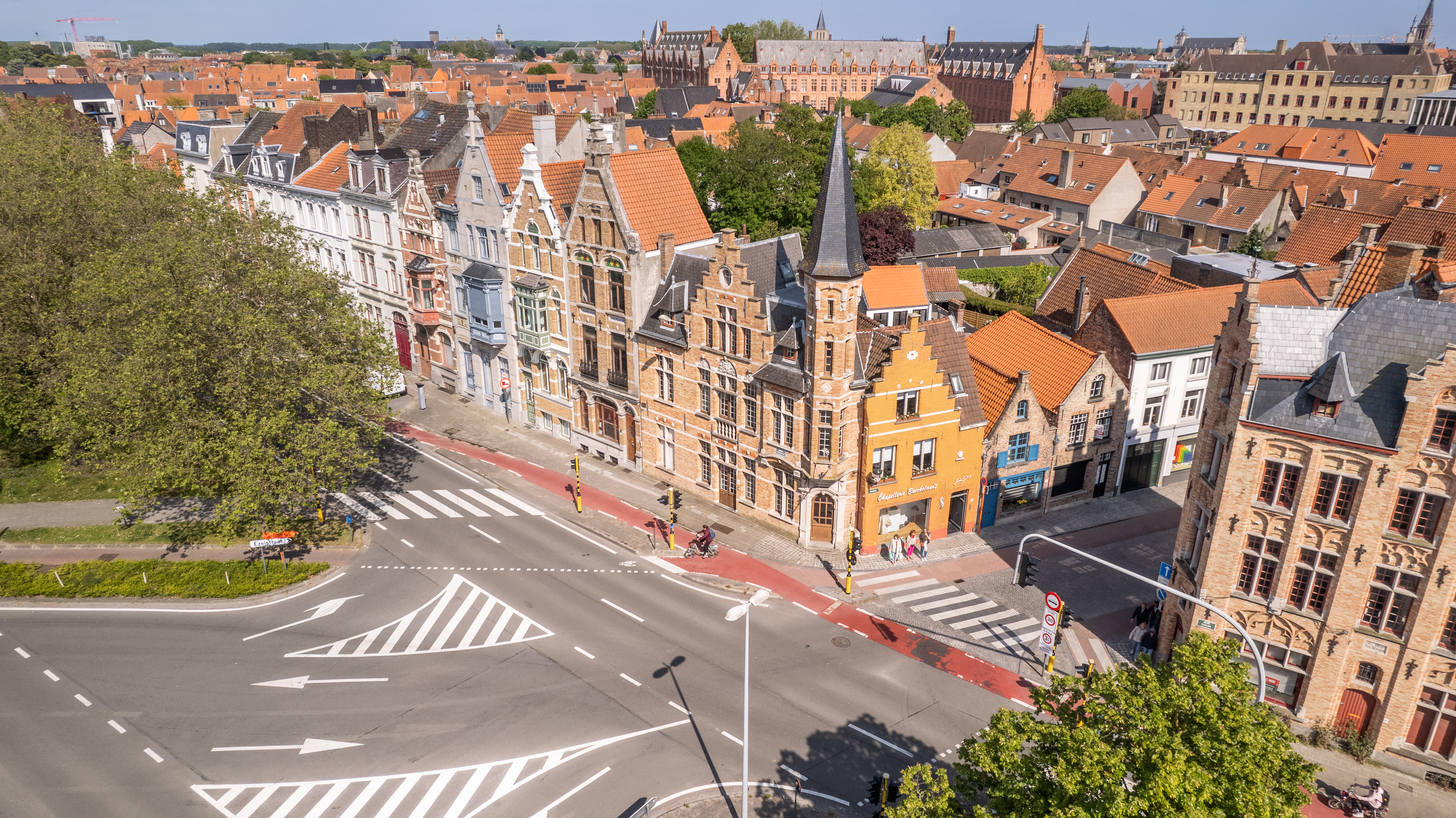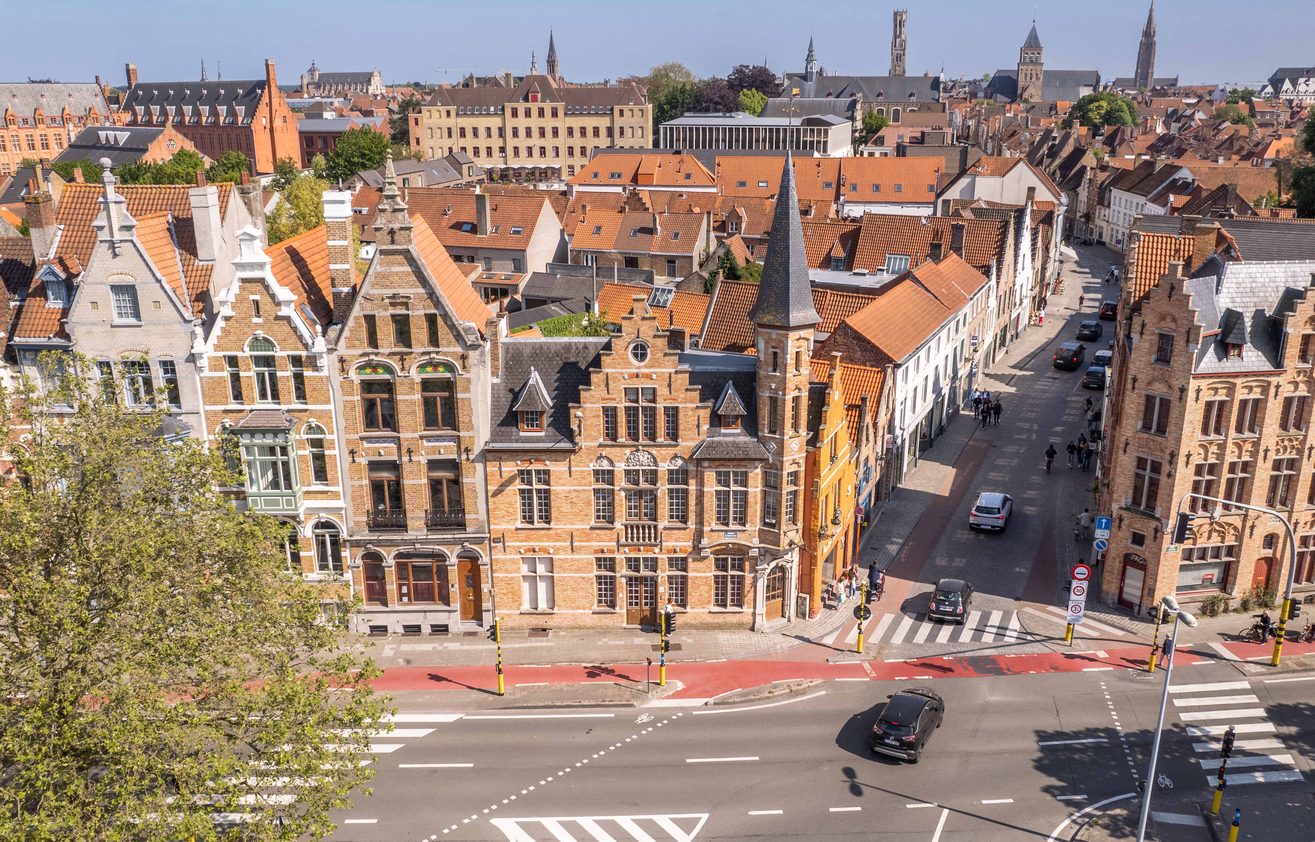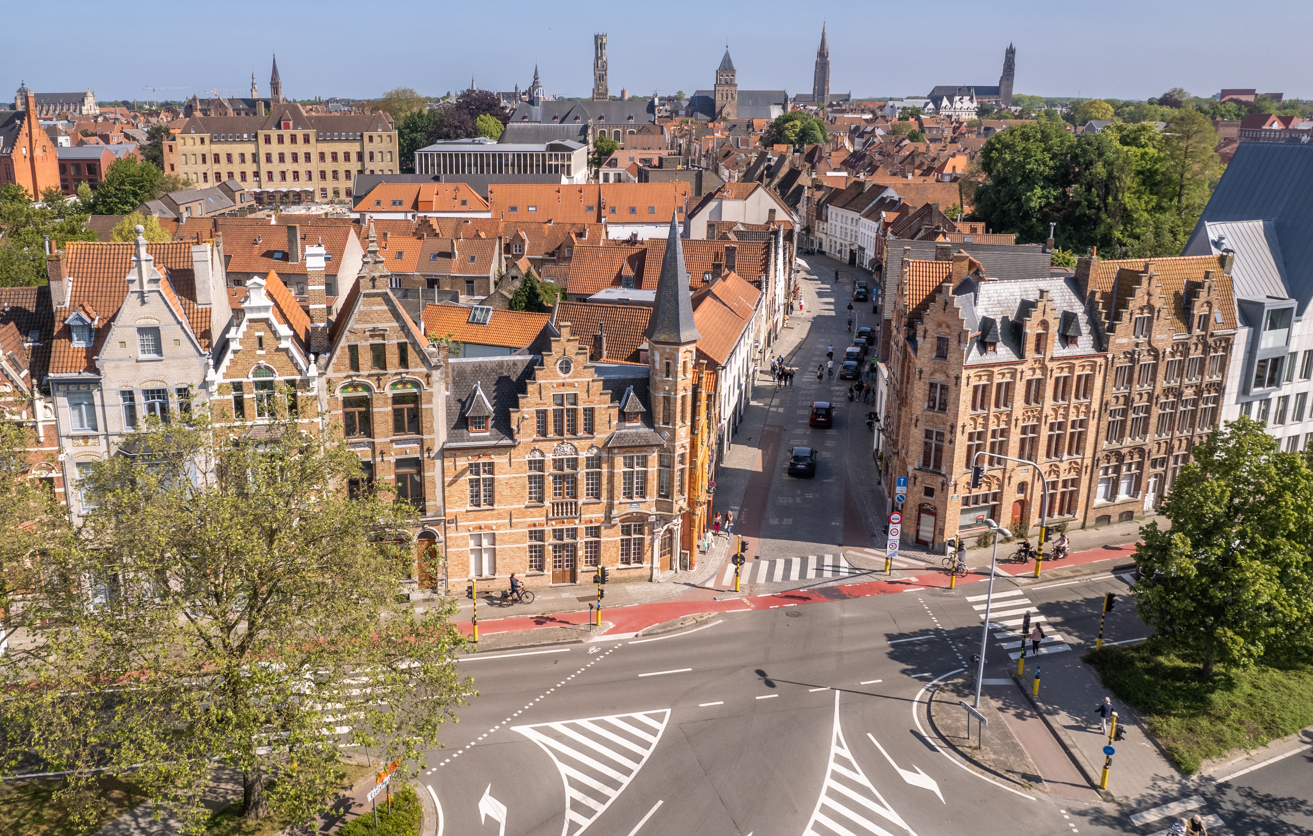 Le bâtiment est situé sur la Koningin Elizabethlaan qui est une « rocade » très fréquentée à Bruges.
