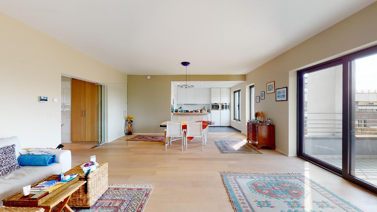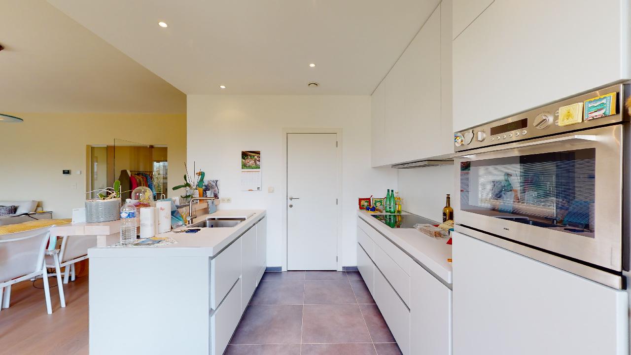 By the Way vous présente ce splendide appartement 2 chambres situé au 1er étage sur 3 avec ascenseur dans une copropriété récente. Il se compose comme suit: vaste hall d’entrée de +/- 7,30 m2 avec espace vestiaire, séjour de +/- 45 m2, cuisine ouverte full équipée (four, four à micro-ondes, réfrigérateur, congélateur, taque, hotte, lave-vaisselle, le tout de la marque ATAG) accès à la buanderie avec emplacement machine à laver et sèche-linge, hall de nuit, chambre 1 de +/- 18m2 avec sa salle de bains indépendante (bain, douche séparée, WC, meuble double évier), chambre 2 de +/- 10m2 avec salle de douche indépendante. L’appartement dispose également d’un garage fermé au sous-sol, 30.000€ en supplément obligatoire. DIVERS : Orientation OUEST, terrasse de +/- 13,50 m2 avec un kot de rangement, VMC de la marque Vent-Axia, chaudière indépendante VAILLANT, boiler, cave de +/- 7m2, BAIL DE 9 ANS en cours se terminant de plein droit le 1er mai 2024, montant du loyer actuel de 1381,50€/mois, PEB : A.