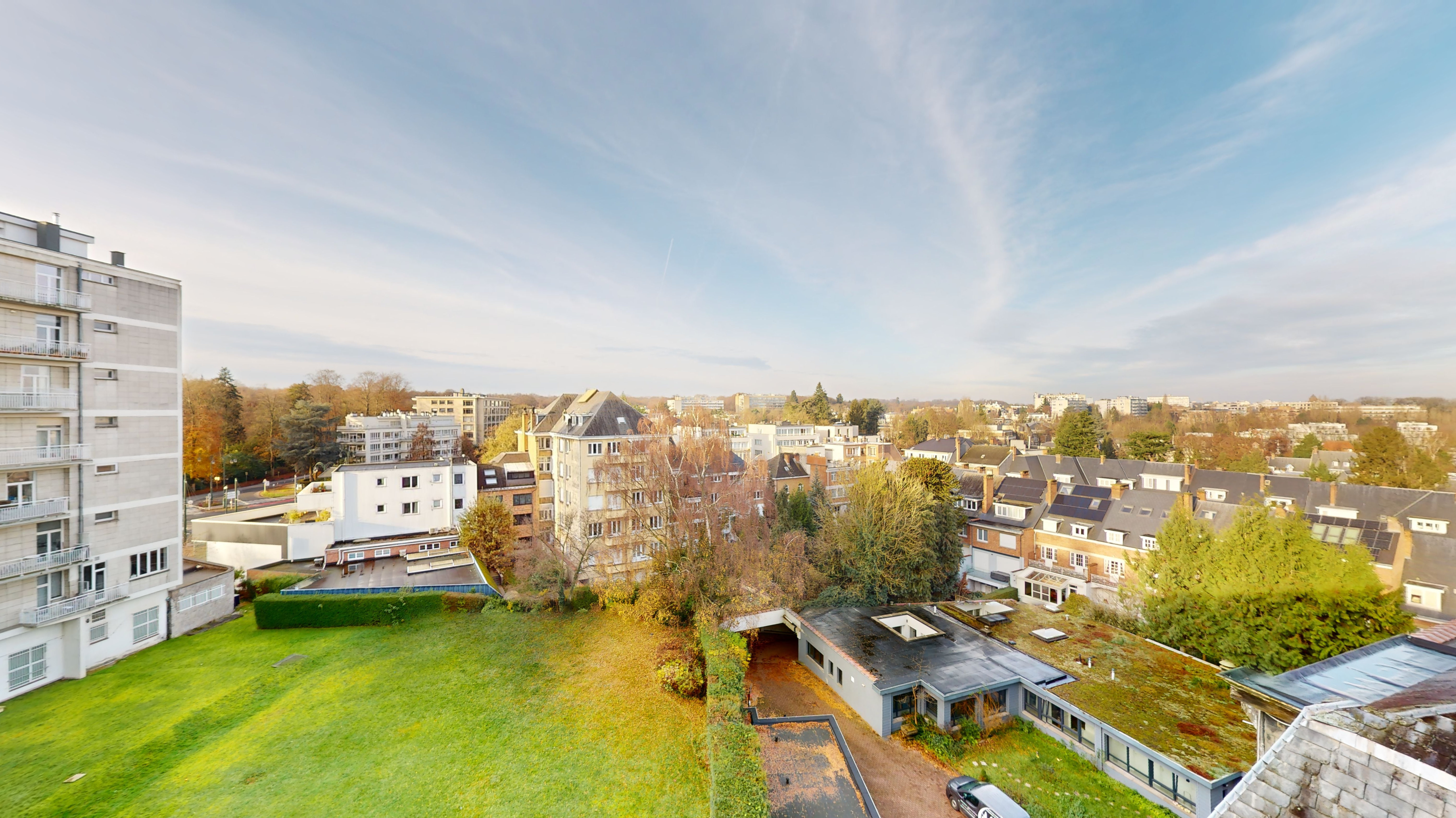 Niché sur la prestigieuse avenue Franklin Roosevelt, en face de la Forest de Soignes et proche des commerces, vous disposerez également d'une facilité d'accès, que ce soit en voiture ou transport en commun (Tram 8, Bus 366, 41, Gare Boondael). Cet appartement traversant de 3 chambres bénéficie d'une situation privilégiée : Entrée par la rue perpendiculaire particulièrement calme, vue dégagée verdoyant, pas de vis-à-vis. L’appartement offre un hall d’entrée, un séjour baigné de lumière, une cuisine séparée, un hall de nuit qui distribue les 3 chambres (chacune possède un accès sur la terrasse) , une salle de bain avec espace buanderie et un wc séparé . Une cave en sous-sol + acquisition d'un parking fermé au prix de 30.000€. Le PEB est C (ce qui est très apprécié pour un dernier étage) . La copropriété est saine, pas de gros travaux prévus, il y a une conciergerie, un local vélo .