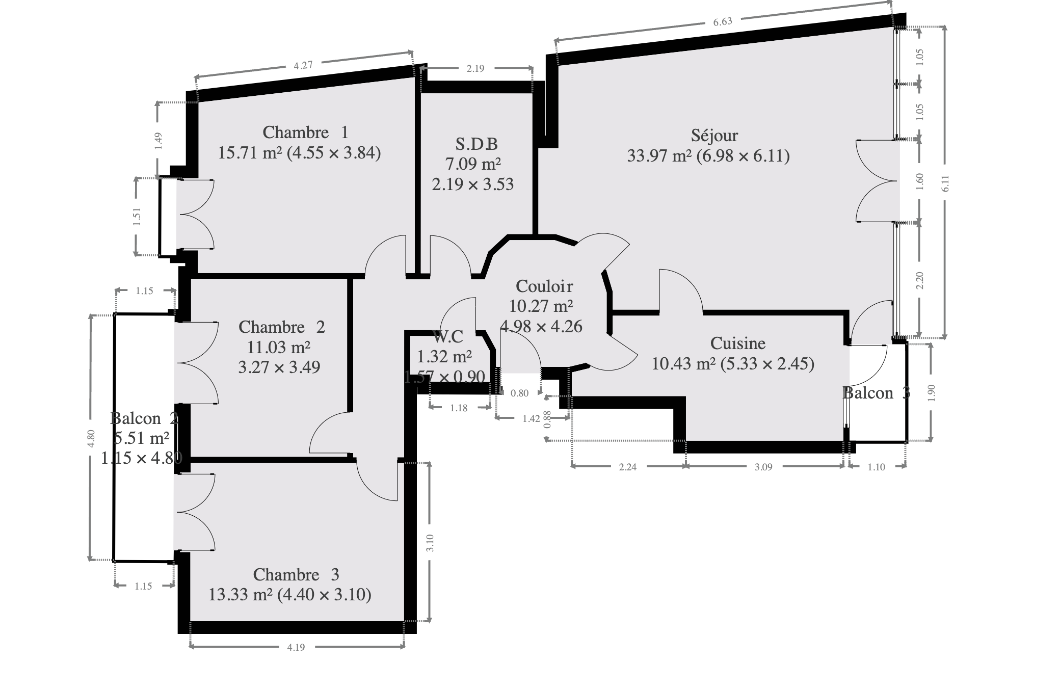 SURFACE TOTALE : 114.98 m² | SURFACE HABITABLE : 106.95 m² | PIÈCE(S) : 8