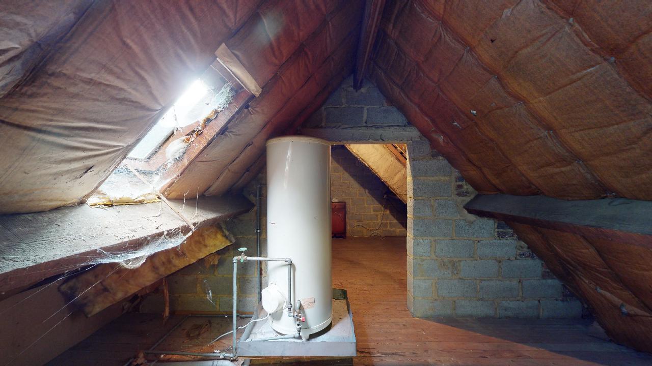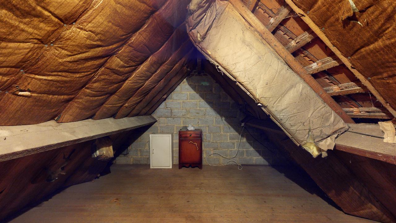 Déjà mentionné par ailleurs, la toiture est à refaire et le bois de charpente devra être au minimum traité. Voir si la charpente actuelle pourra supporter le poids d'une nouvelle toiture avec isolation et éventuellement panneaux solaires. Celle-ci devra peut-être partiellement être renforcée.