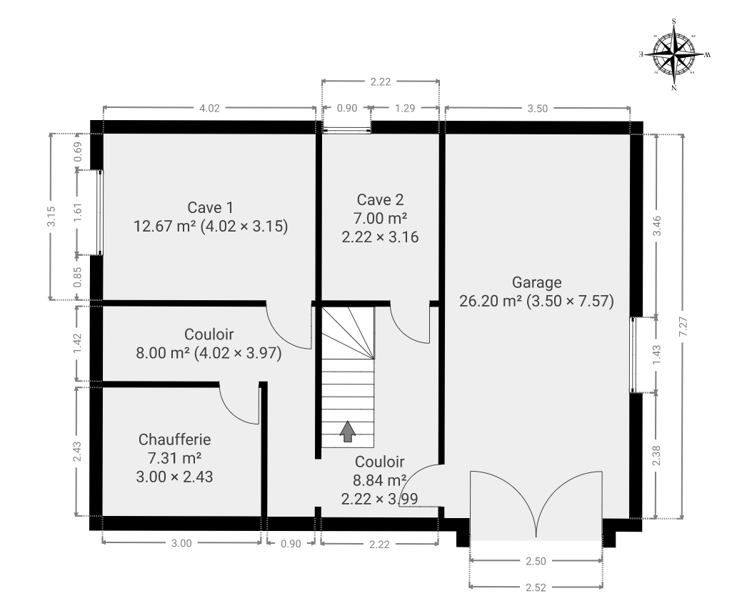 Le garage est en connexion directe avec les caves. Les mêmes remarques sont applicables au garage qu'aux caves.