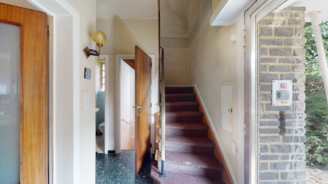 Les marches d'escalier vers le 1er étage sont revêtues d'une moquette qui est usée sur les 3 premières marches dans l'axe de la montée.
