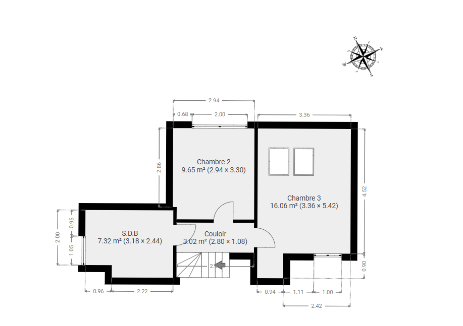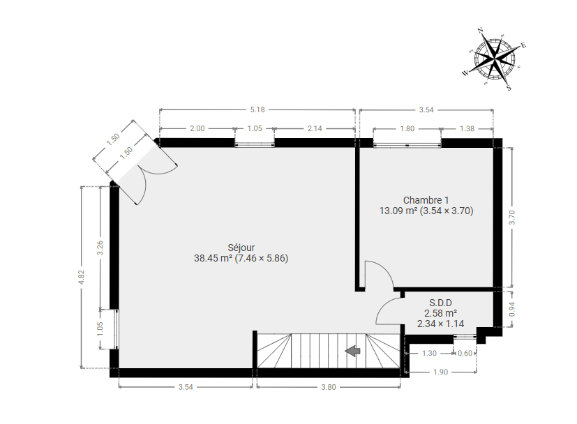SURFACE TOTALE : 54.08 m² | SURFACE HABITABLE : 54.08 m² | PIÈCE(S) : 3