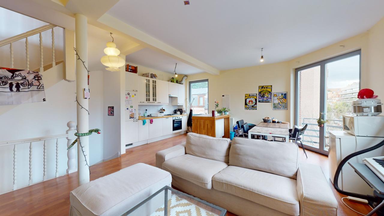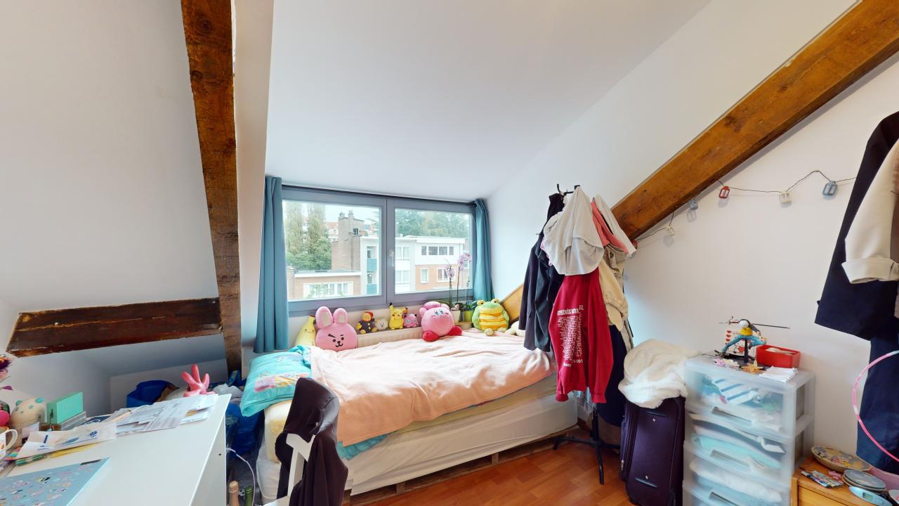 Situé sur le Boulevard des Invalides, à proximité des transports en commun, des commerces de la Chaussée de Wavre et de la E411, By the Way vous propose ce charmant appartement en duplex de +/- 102m2 (selon PEB), au 2ème et 3ème étages d'un petit immeuble de 3 unités sans ascenseur. Composition : à l'étage inférieur : séjour avec cuisine ouverte donnant accès à un petit balcon, chambre 1 +/- 13m2 et salle de douche avec WC. A l'étage supérieur : 2 chambres de +/- 9,5m2 et 16m2 et une salle de bain avec WC et coin buanderie. Cave privative au sous-sol. PEB F. Electricité non conforme. Toutes les consommations privatives sont individuelles. L'appartement est actuellement loué. Nouvelle copropriété à créer, l'immeuble venant d'être divisé. Ces informations sont données à titre informatif et non contractuel