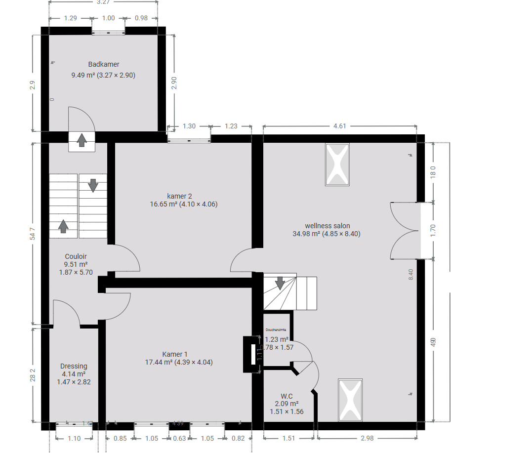 TOTALE OPPERVLAKTE : 97.33 m² | WOONRUIMTE : 97.33 m² | kAMERS : 8