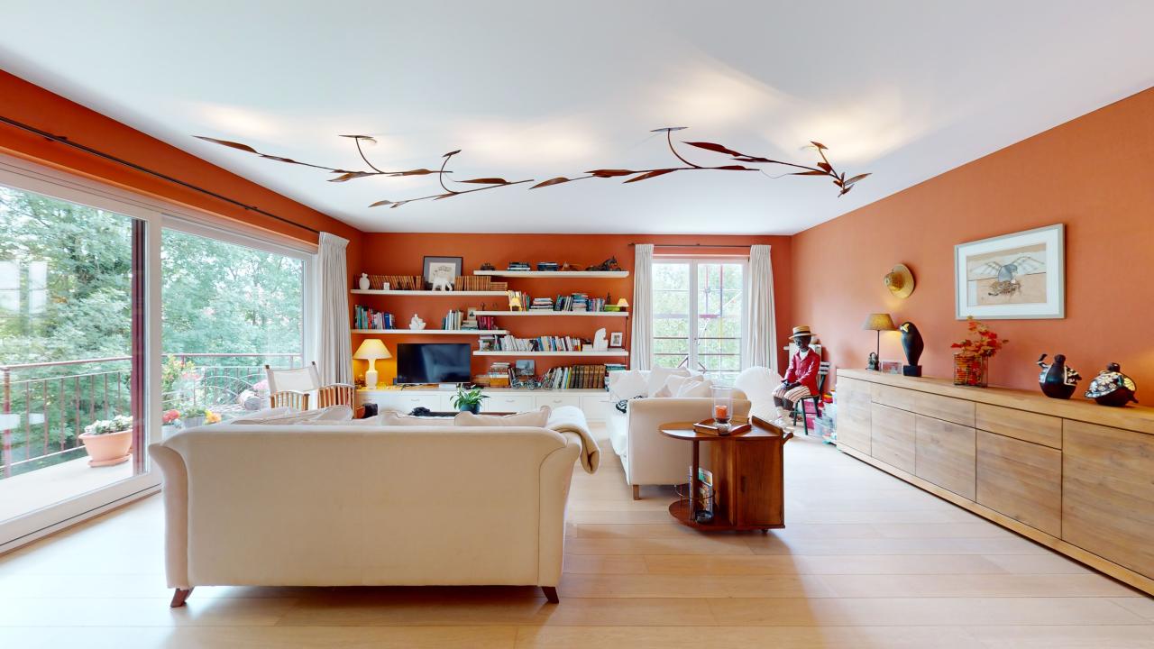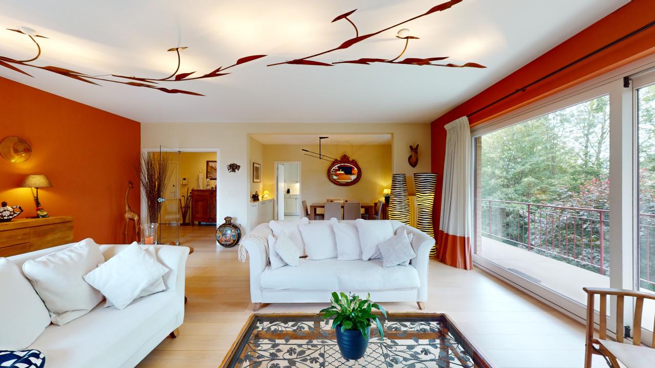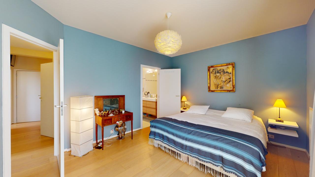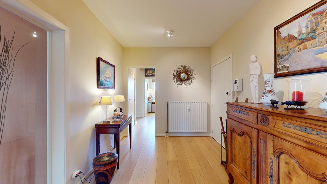 By the Way vous propose ce superbe, spacieux et lumineux appartement de 155 m² au 3ème étage sur 5 d'un bâtiment construit en 1997. Il vous offre : beau hall d’entrée de standing, accès au séjour via de belles double-portes en verre, grand salon et salle-à-manger offrant 54 m², prolongé par la cuisine séparée et super-équipée de 12 m², ces 3 pièces donnant accès à la grande et belle terrasse arrière de 15 m² orienté plein sud sur la verdure sans vis-à-vis. En partie centrale et avant, wc invité, grand local de rangements et espace buanderie, hall de nuit donnant accès aux chambres dont la parentale de 15m² avec salle de bain privative, les chambres 2 à 4 de 10, 10 et 9 m² et une salle de douche séparée. Revêtement en parquet chêne massif de 2012 partout excepté dans les pièces d'eau, porte blindée, vidéophone, double-vitrage, PEB C, ascenseur, accès PMR, charges mensuelles prov. chauffage incluses : 330 €. En sous-sol et en option : un grand garage fermé avec ouverture télécommandée (+35.000€) et/ou un emplacement de parking ouvert (30.000 €) juste à côté. Très bon état général.