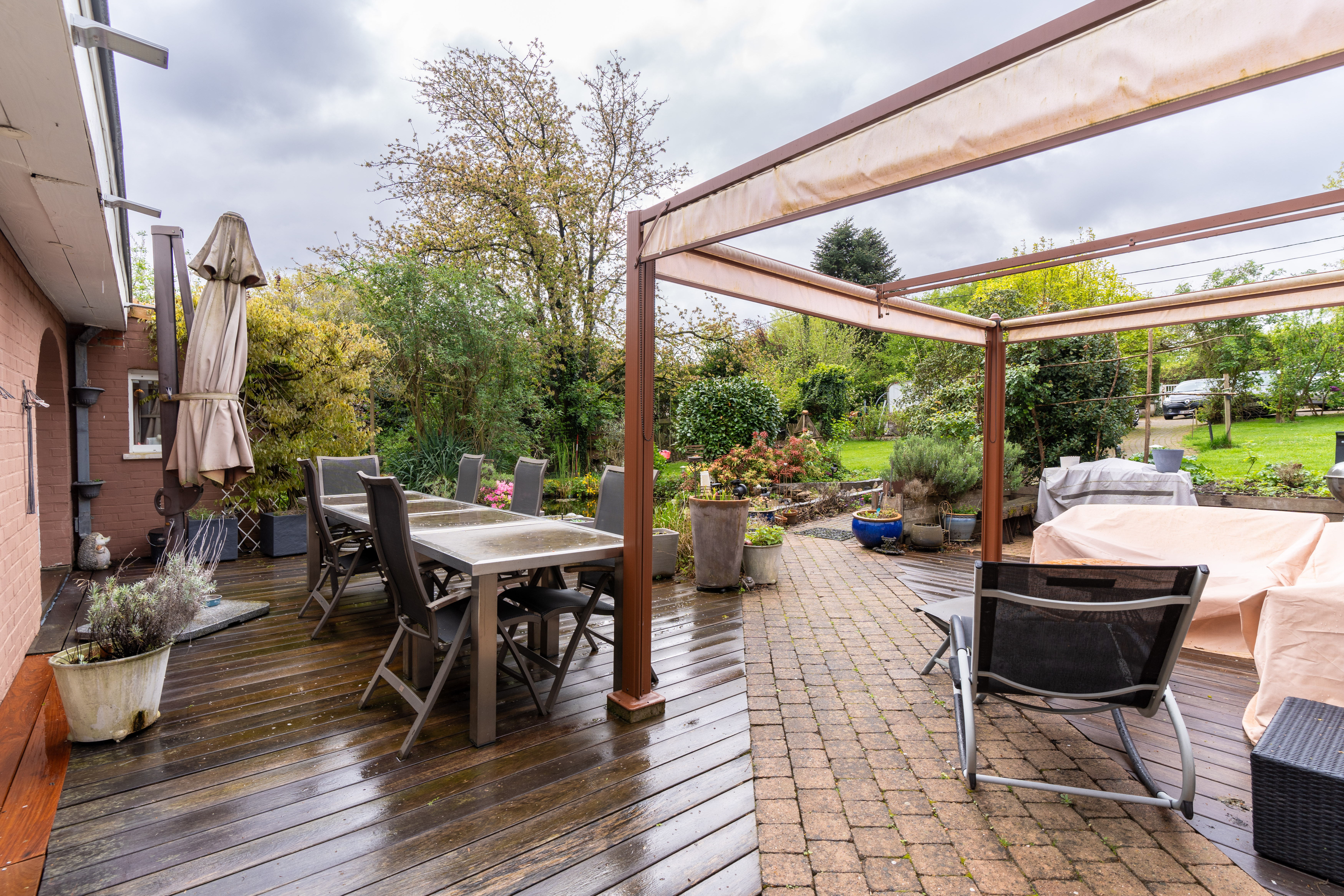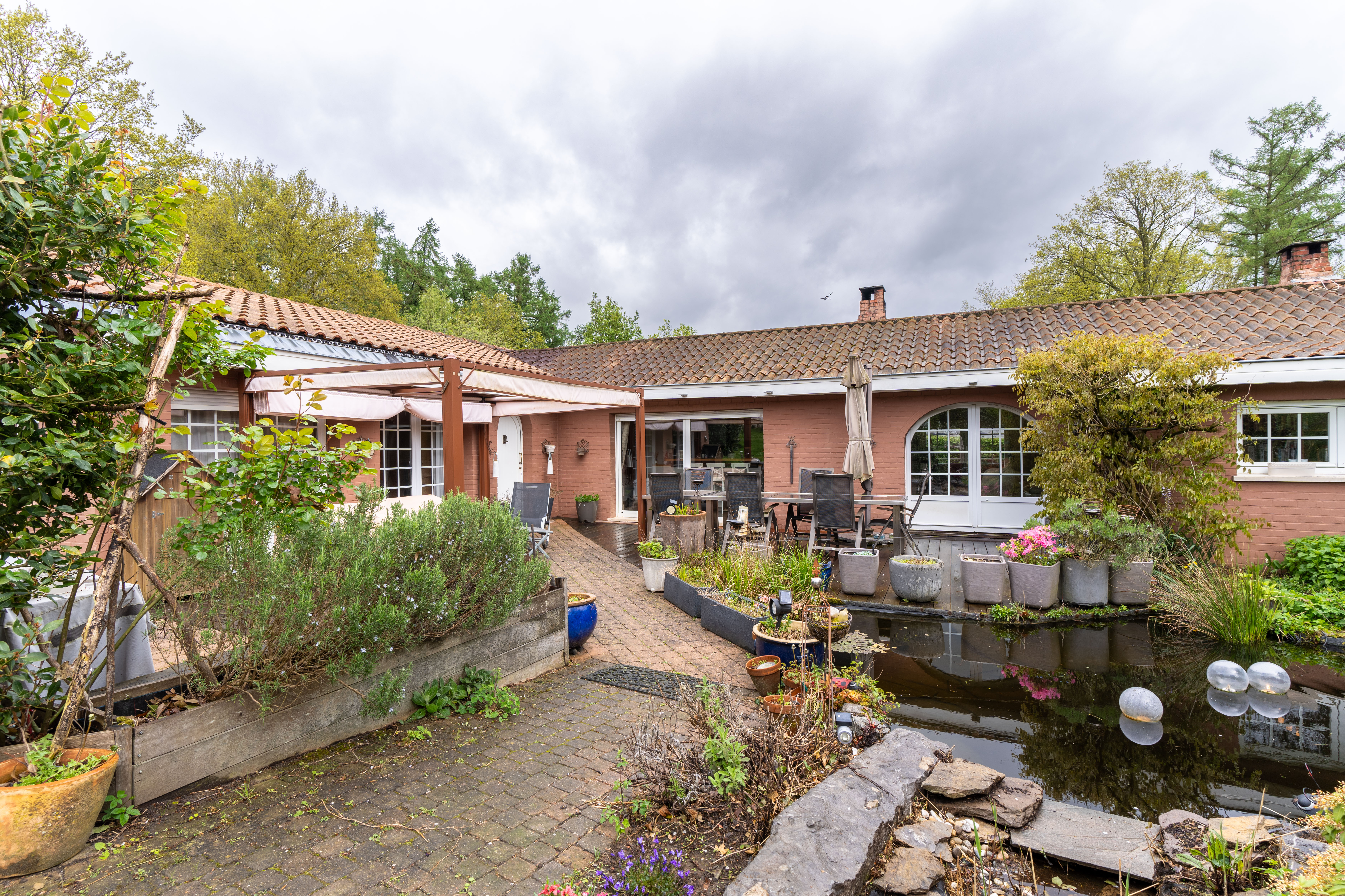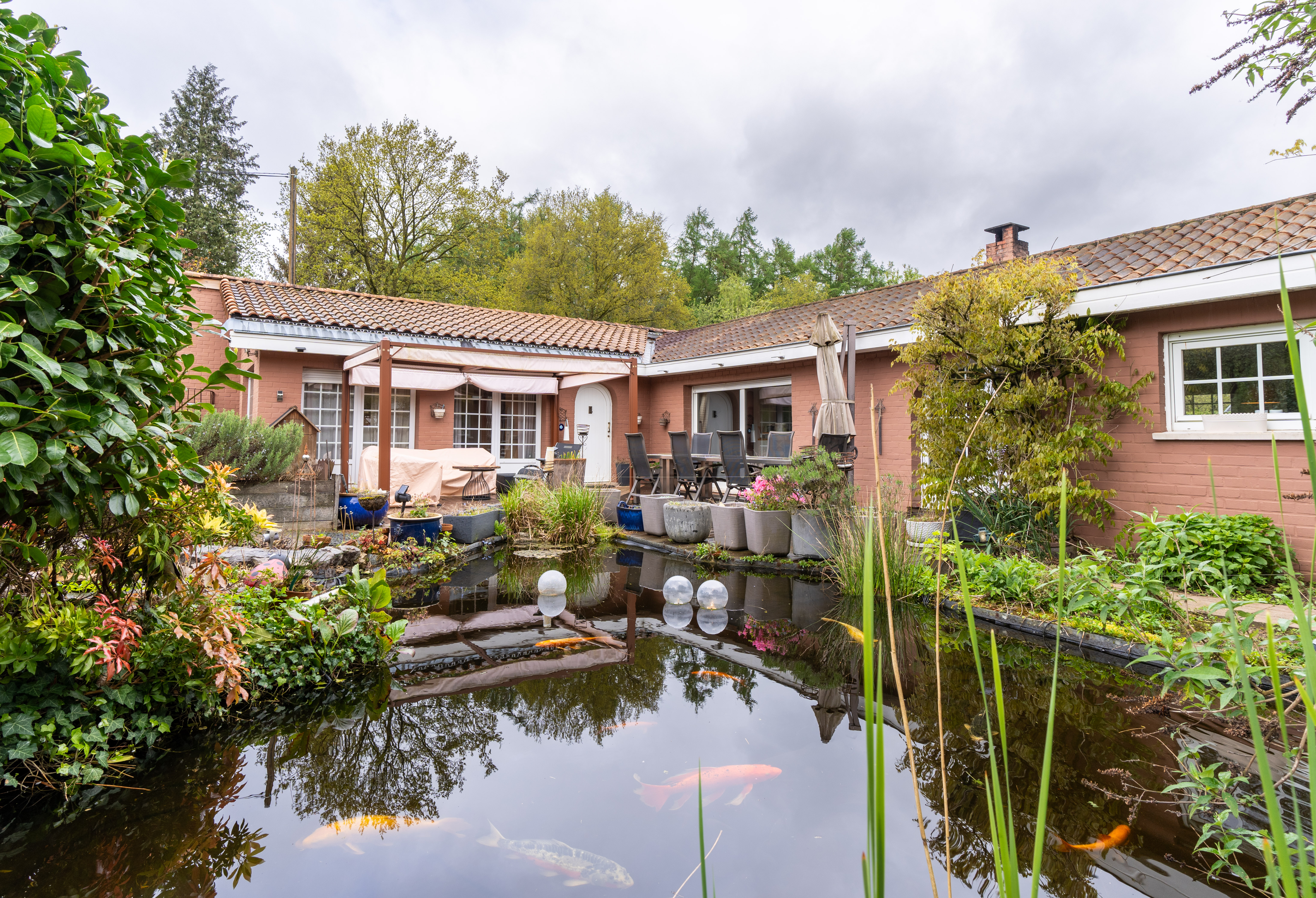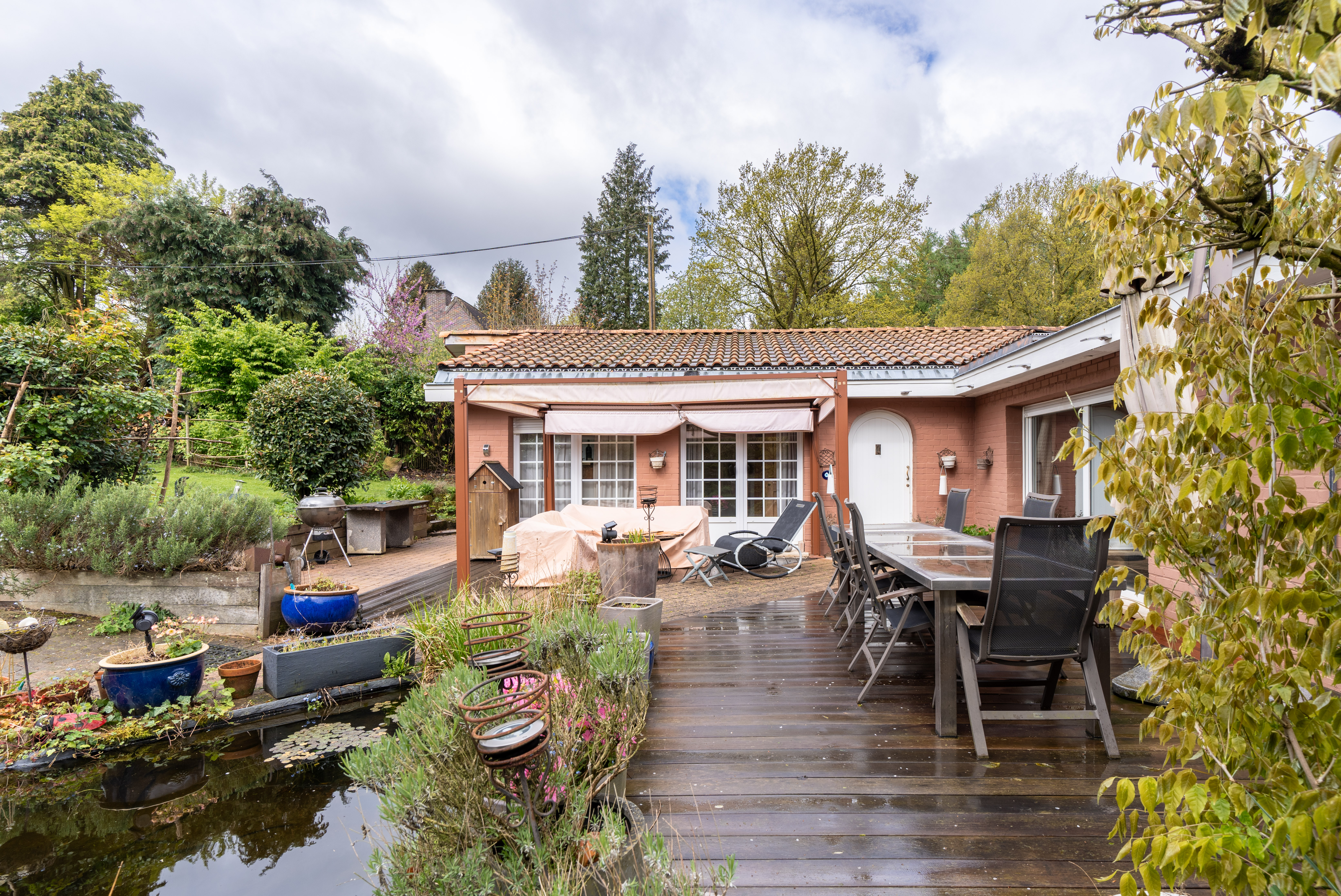 Charmante villa 4F de plain pied, dans un cadre verdoyant, composée d'un beau grand jardin arboré, d'un étang en bordure d'une spacieuse terrasse aménagée et orientée plein sud. Hall d'entrée avec vestiaire, 2 WC séparés (avec lave-mains), grande pièce à vivre avec feu ouvert et donnant sur la terrasse via de grandes baies vitrées, belle cuisine super équipée, 4 chambres + bureau, salle de bain et salle de douche. Buanderie, grenier et garage 2 voitures. Parking privé pour plusieurs voitures.