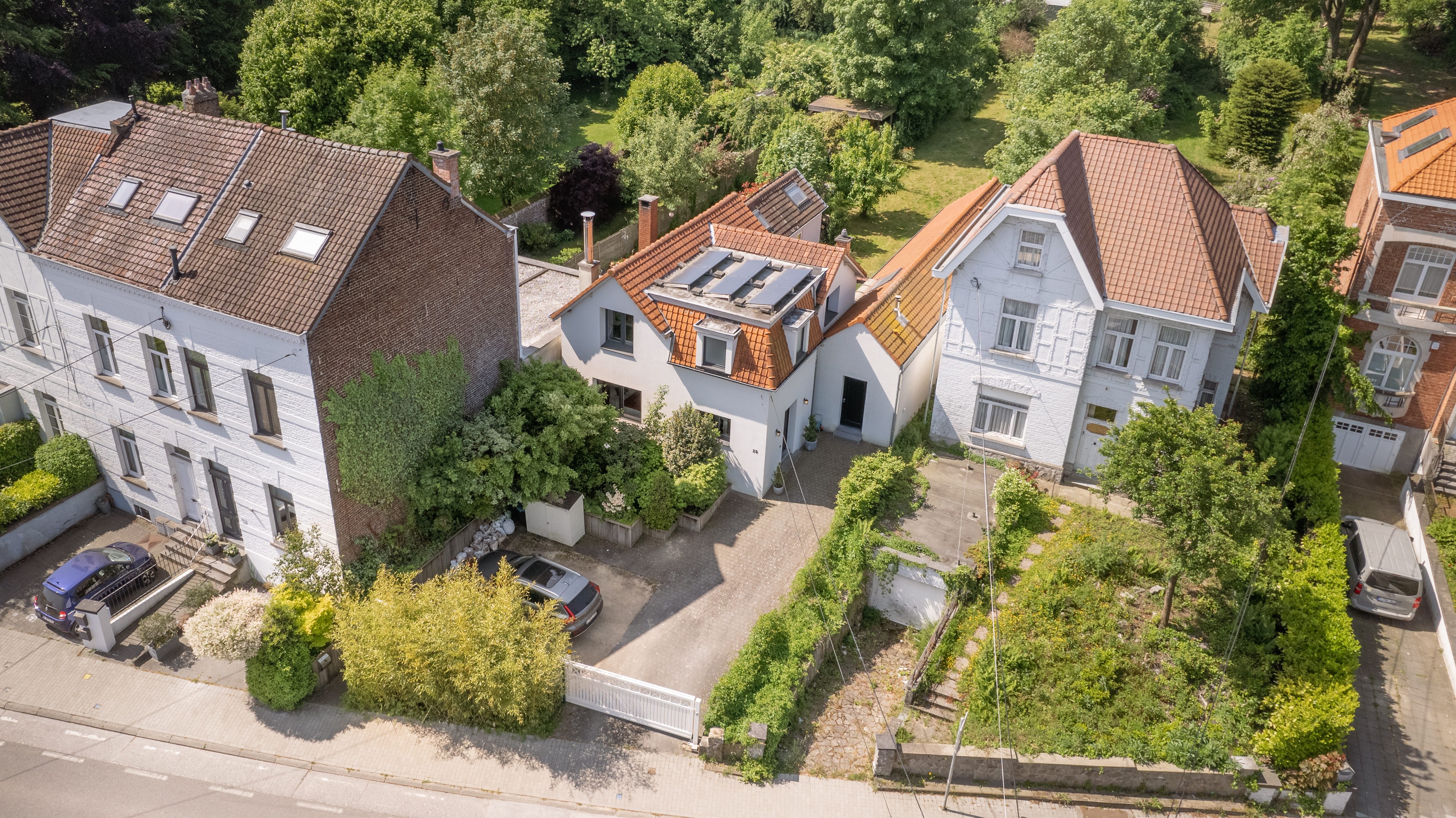 Maison de charme 3 façades de 5 chambres, 2 salles de bains et 1 bureau. La maison est bâtie sur un terrain de +/- 9 ares 50 orienté sud-ouest. Vous pourrez vous garez facilement devant la maison grâce à ses deux places de parking avec portail.