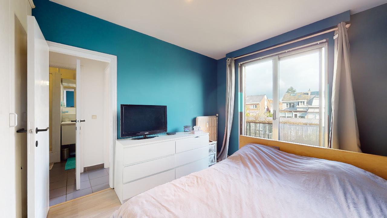 Appartement 2 chambres lumineux, situé dans un quartier calme, à proximité de la gare et de toutes les facilités de transports et commerces. Il se situe au 1er étage d’un immeuble (de 3 étages) avec ascenseur. Le spacieux living bénéficie d’une belle luminosité grâce à ses grandes baies vitrées et donne accès à une cuisine semi-ouverte