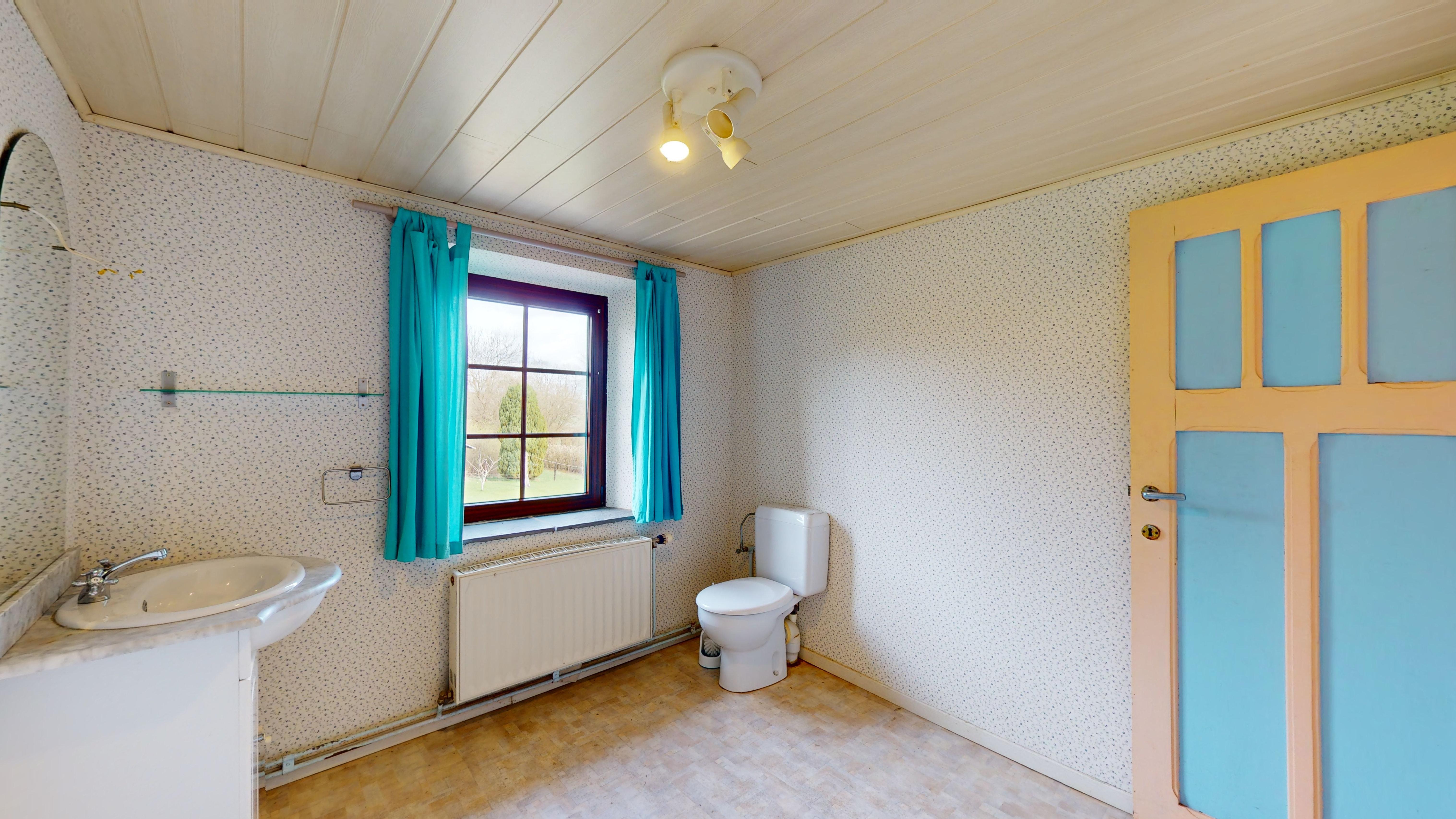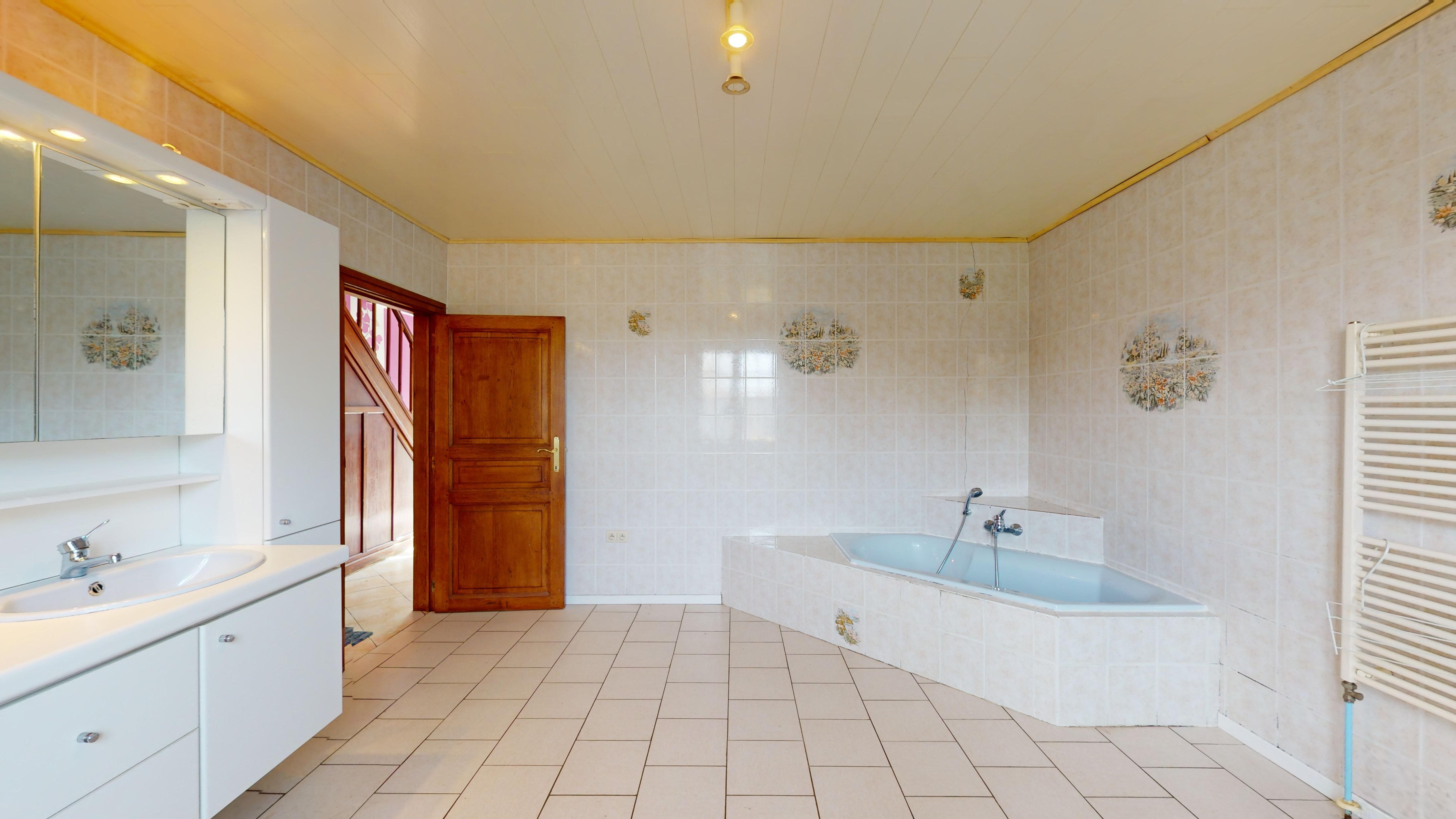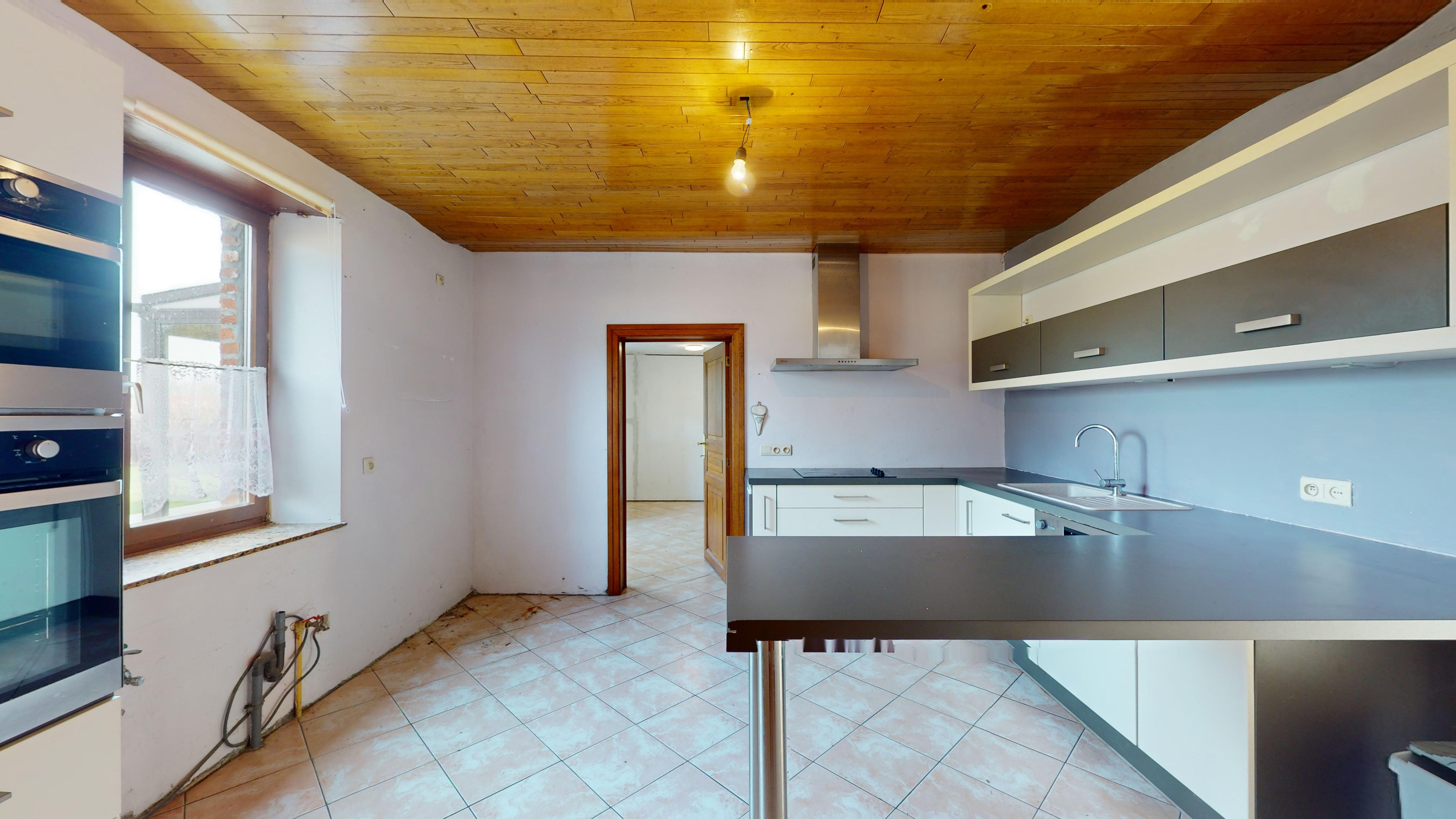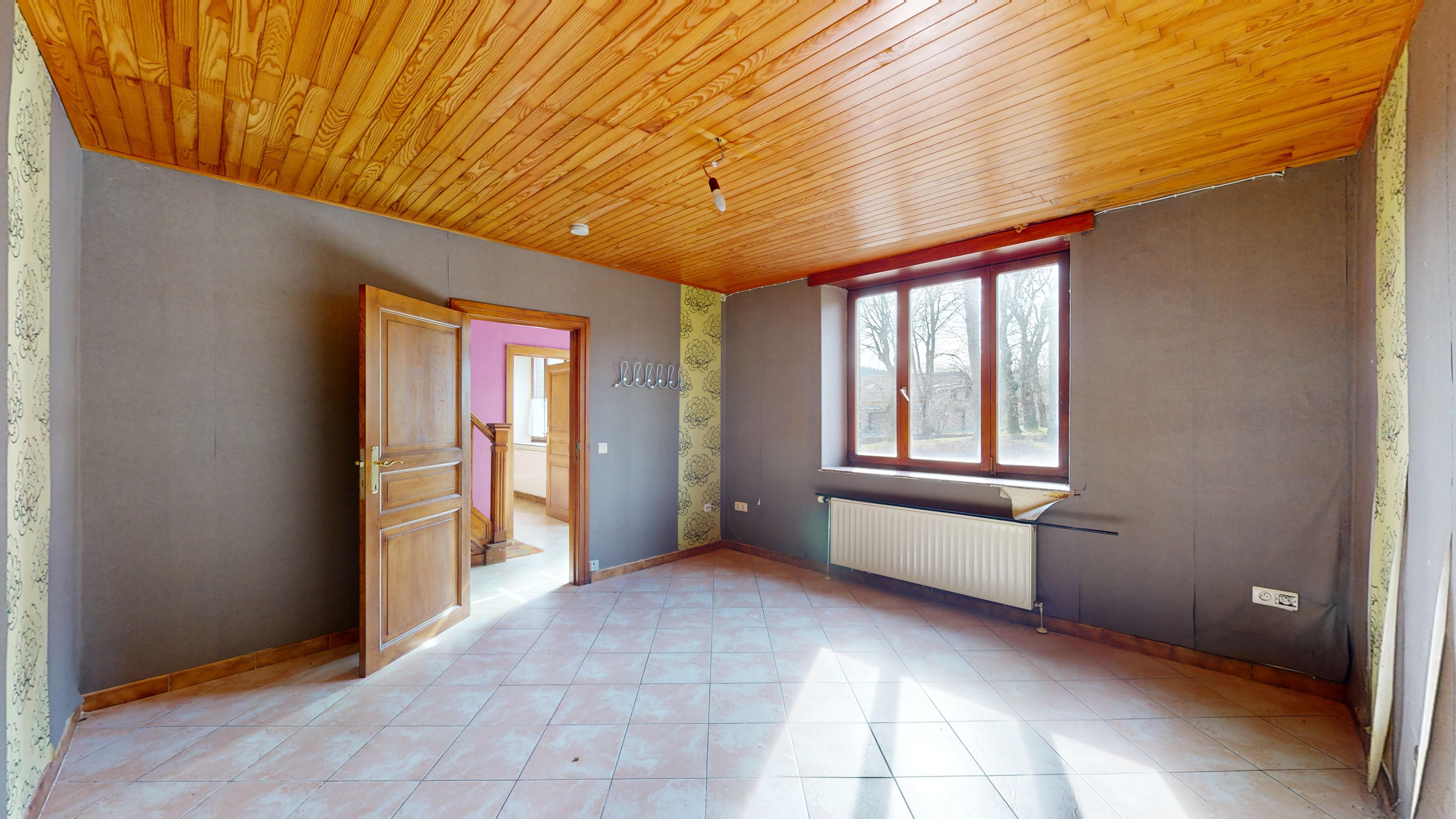 Au rez-de-chaussée, hall d’entrée desservant un bureau, une salle de bain avec bain et douche, un wc séparé, un salle à manger ouverte sur le séjour, une cuisine équipée séparée, une buanderie, une véranda avec une magnifique vue sur la nature sans vis à vis et un accès à la grange. A l’étage, le hall de nuit dessert 4 chambres et une salle de bain. Au 2e, un grenier mansardé à aménager. Techniques : Châssis en bois double vitrage, citerne à mazout de 2500L, boiler Bulex de 2017, PEB D et électricité non-conforme. La maison est libre à l'acte.