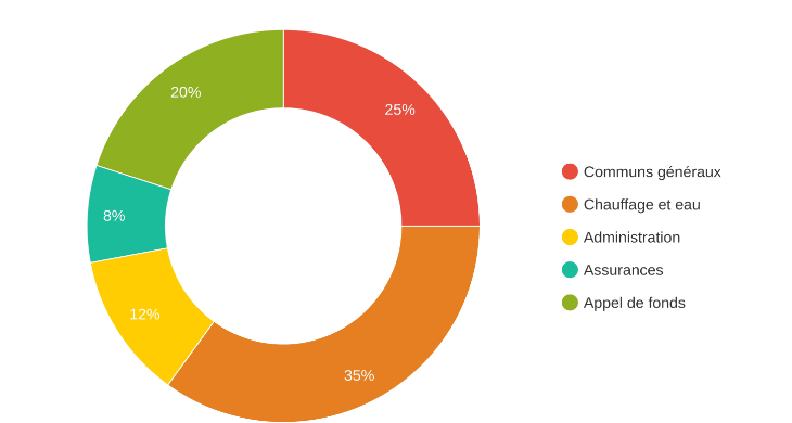 Ce tableau des charges comprend : Communs généraux - Chauffage et eau – Administation – frais privatif et appel de fons -