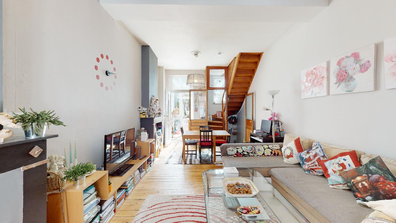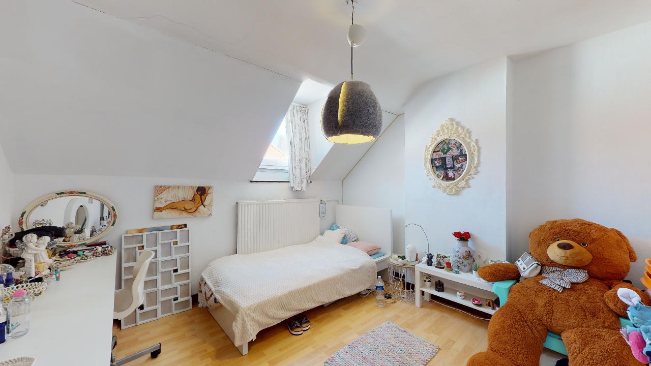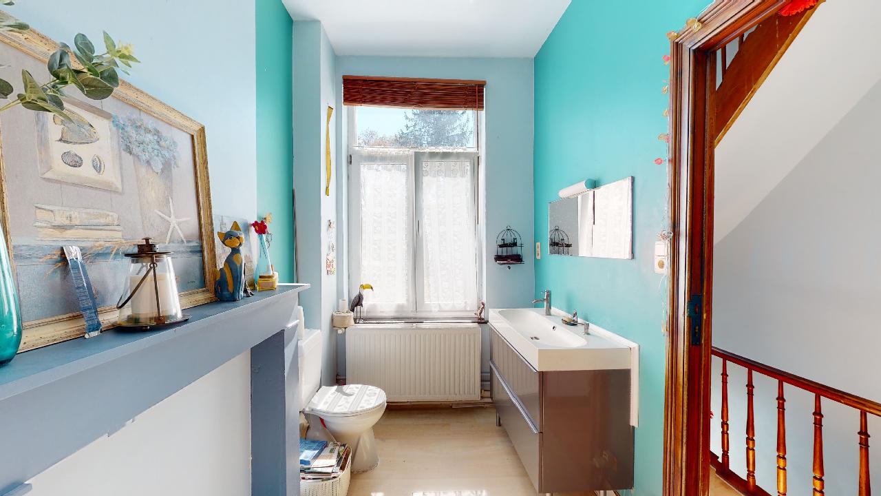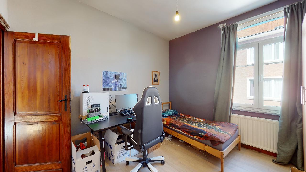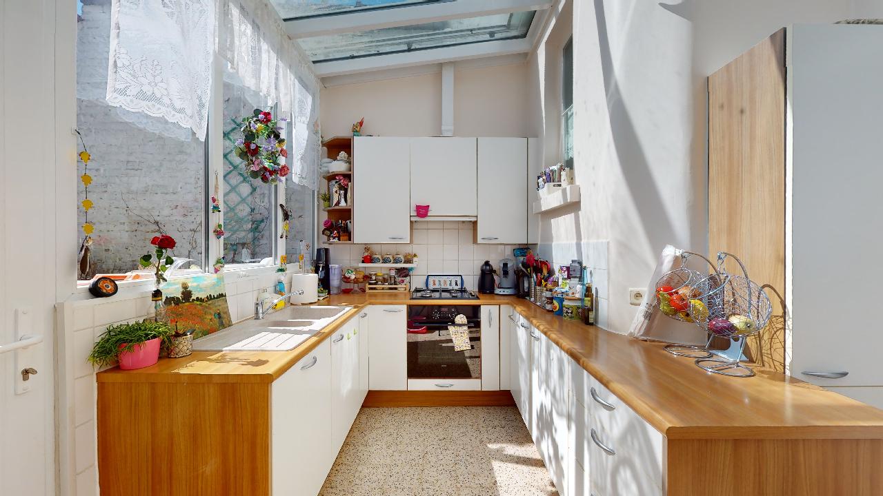 À proximité des commerces de la place Keym et du centre sportif des 3 Tilleuls, charmante maison 2 façades de +/- 115 m2 remise récemment à neuf. Se compose d'un séjour/salle à manger avec feu ouvert fonctionnel, cuisine équipée, 3 chambres dont une grande de +/- 15 m2 au premier étage avec la salle de bains, 2 autres chambres de +/- 11 m2 et accès au grenier au deuxième étage. Cave et buanderie au sous sol. Terrasse de +/- 9 m2 ainsi qu'un jardin de +/- 49 m2 orienté plein Sud.