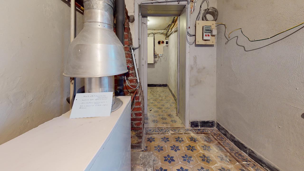 La cuisine installée était destiné à un bureau, il n'y a donc pas de taques de cuisson et de hotte. De plus la taille de la cuisine par rapport au reste de la maison est assez petite. Il est donc fort probable que le nouvel acheteur refasse une cuisine complète, budget estimé à 20.000€ pour la cuisine et 3000€ pour un percement à droite de la cheminée.