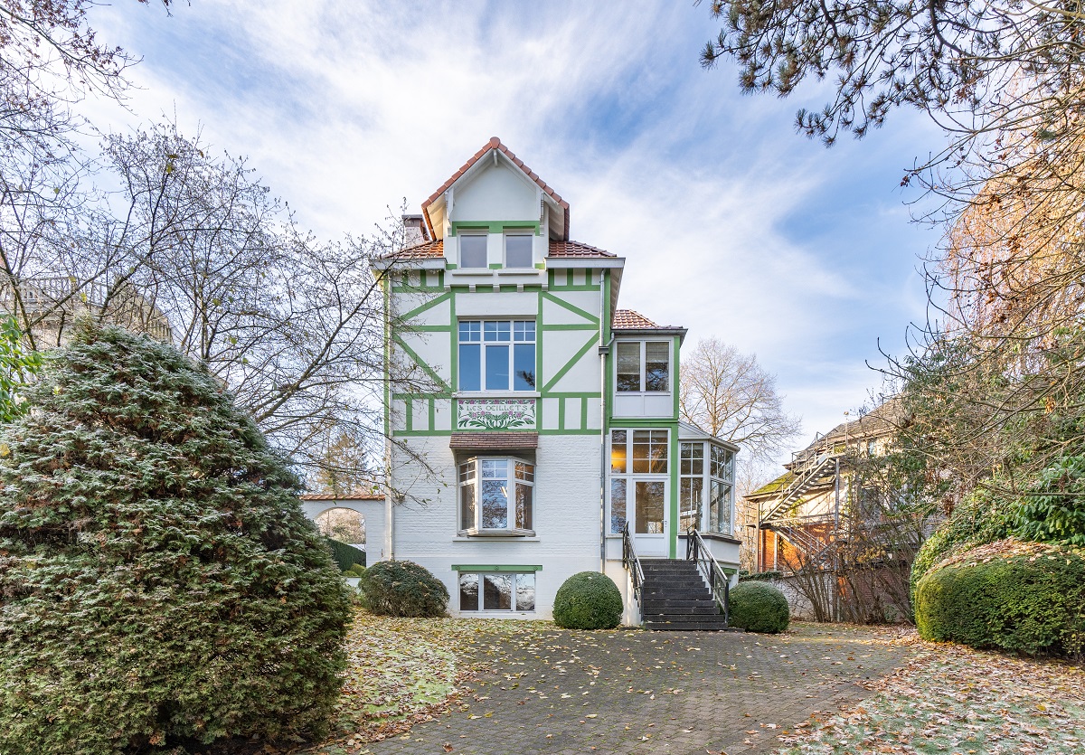 Dans le quartier du lac de Genval, au cœur d'un jardin arboré, cette habitation de style "villégiatur" ou normand, remonte au tout début du XXe siècle. Elle a été réalisée par l'architecte Fernand Symons, maitre d'œuvre de plusieurs maisons des bords du lac. Cette élégante demeure est décorée d'un sgraffite sur la façade coté rue, de style art nouveau, "les Œillets": une identité qui lui est propre et souligne son caractère unique. La maison fut rénovée en profondeur en 2004 et 2009 et servit de dépendance au Château du Lac. Spacieuse, elle offre un beau living de +/- 45 m2 avec véranda, un poêle à bois Godin en fonte et petit granit, 4 grandes chambres et 3 salles de bain. Le toit a été refait en 2020. elle est sise sur un terrain de +/- 9 ares. Elle dispose aussi d'un bureau et caves en entresol, trois accès extérieurs et d'un petit garage. Elle est proche du lac, de ses restaurants, du Yachting club, des Papeteries de Genval et à 5 minutes à pieds de la gare de Genval. Elle offre de nombreuses possibilités ( i.e. profession libérale).