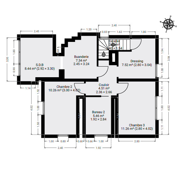 SURFACE TOTALE : 57.37 m² | SURFACE HABITABLE : 57.37 m² | PIÈCE(S) : 8