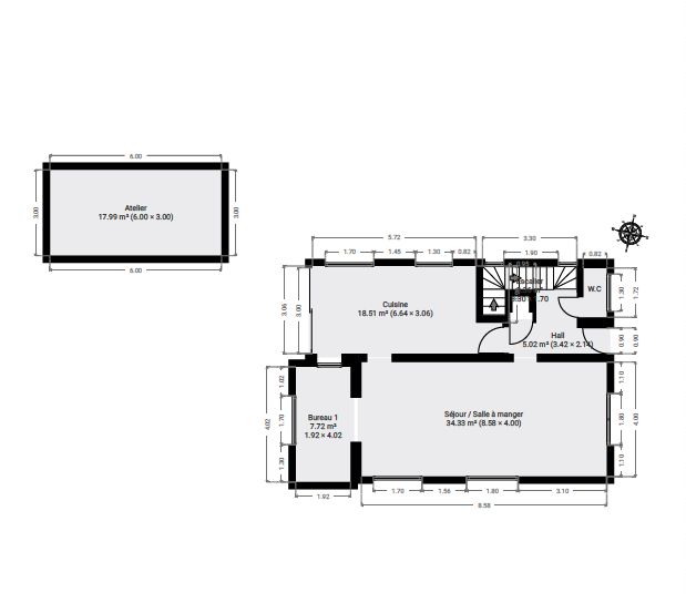 SURFACE TOTALE : 26.58 m² | SURFACE HABITABLE : 26.58 m² | PIÈCE(S) : 1