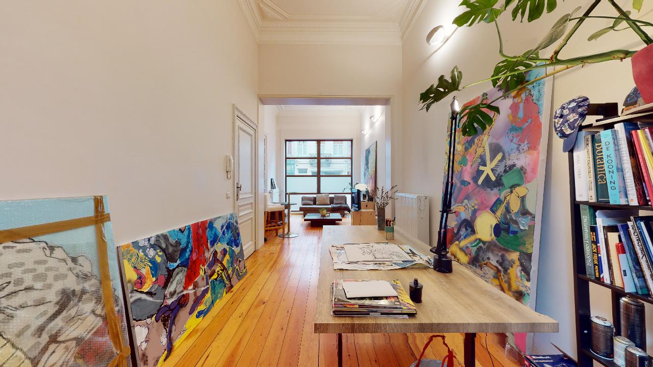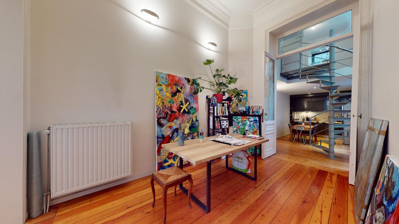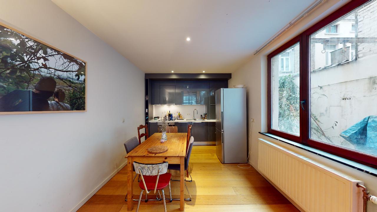 Superbe appartement dans une maison de maître, dans un quartier prisé, proche du Parvis de Saint-Gilles. Etant légalement référencé comme un espace bureau + commerce, mais en cours de régularisation urbanistique. Actuellement, le bien se présente comme suit: 3 pièces en enfilade avec hauts plafonds (4,30m), moulures et joli parquet, comprenant un séjour, une salle à manger (ou bureau) et une cuisine super équipée (four, lave-vaisselle, frigo, congélateur, hotte). La chambre (avec grands placards sur mesure), la salle de douche et le WC séparé se trouvent en mezzanine avec une confortable hauteur sous plafond. Le bien dispose au -1 d’une grande cave privative (8m2) et d’une buanderie partagée avec les 3 autres unités de l’immeuble. Large hall d’entrée avec possibilité d’entreposer son vélo. Chaudière gaz Viessmann. Châssis double vitrage. Compteurs séparés. Charges très peu élevées. Le bien est actuellement occupé par un locataire. Loyer (non indexé) : 850 euros par mois, hors charges.