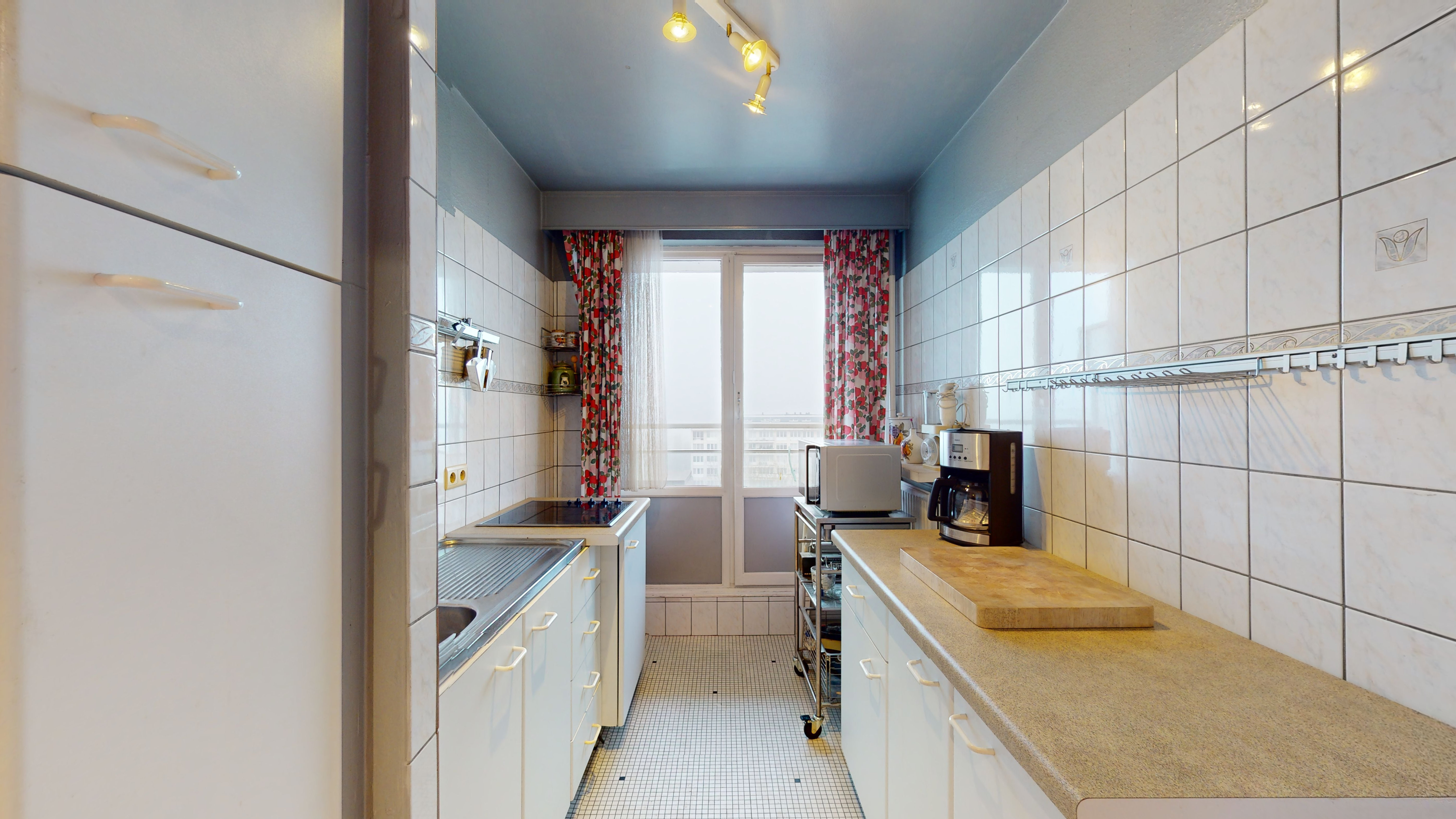 Appartement 2 chambres à rafraîchir. Salon, Cuisine semi-équipée, salle de bains et toilette séparée. Balcon orienté vers l'ouest. Garage intérieur en option. L'appartement est situé au 11ième étage avec un très belle vue. Voisins de palier très calme et aimable.