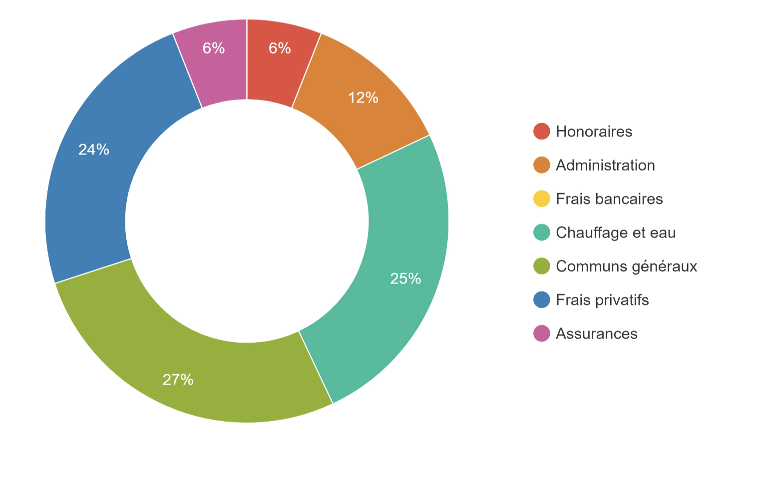 Ce tableau des charges comprend : Communs généraux et privés – Appel de fonds – Nettoyage et entretien - Assurances – syndic – frais de gestion - fonds de réserve