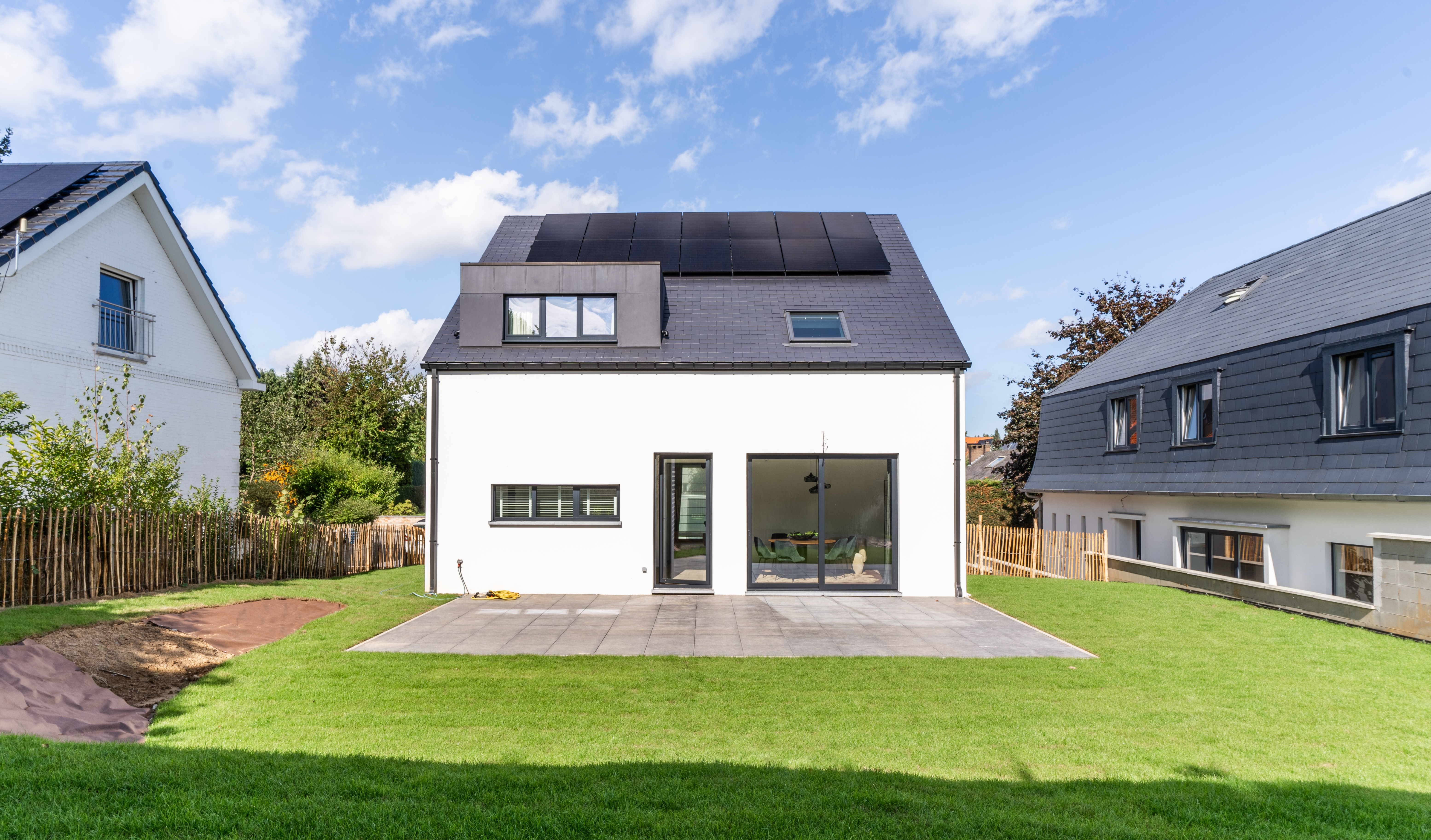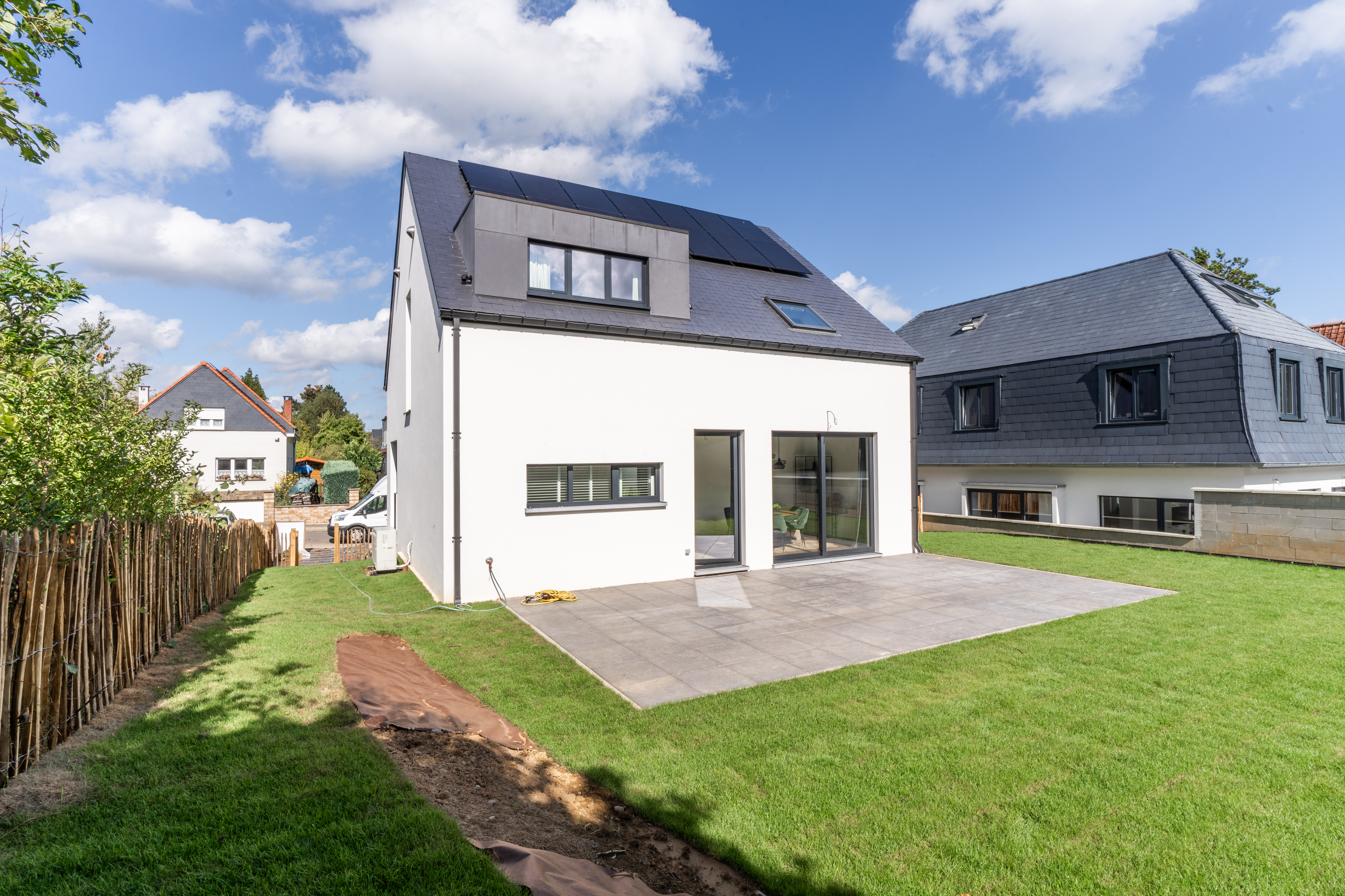 Lumineuse villa 4 façades, NEUVE, répondant aux dernières normes énergétiques (PEB A). Cette maison de haut standing est située dans un quartier calme, offrant des espaces verts et toutes les commodités de la ville de Waterloo. Elle se compose comme suit : Au RDC : hall d’entrée avec vestiaire, wc, séjour/salle à manger, cuisine super équipée ouverte sur un 2e espace salon/salle à manger. Les grandes baies vitrées de la cuisine/salle à manger amène à une terrasse et au jardin (orientés SUD). Au 1er étage : 4 chambres spacieuses, 2 SDD, 1SDB. Au sous-sol : espace (bureau) avec entrée privative, toilette invitée, cave/buanderie et garage (pour 2 voitures). Éléments techniques : Chauffage au sol avec système de pompe à chaleur, double vitrage, isolation pointue, système de ventilation mécanique double flux, citerne d’eau de pluie (5.000 litres) + alarme. Vente sous régime TVA (et droits d’enregistrement pour la partie terrain).