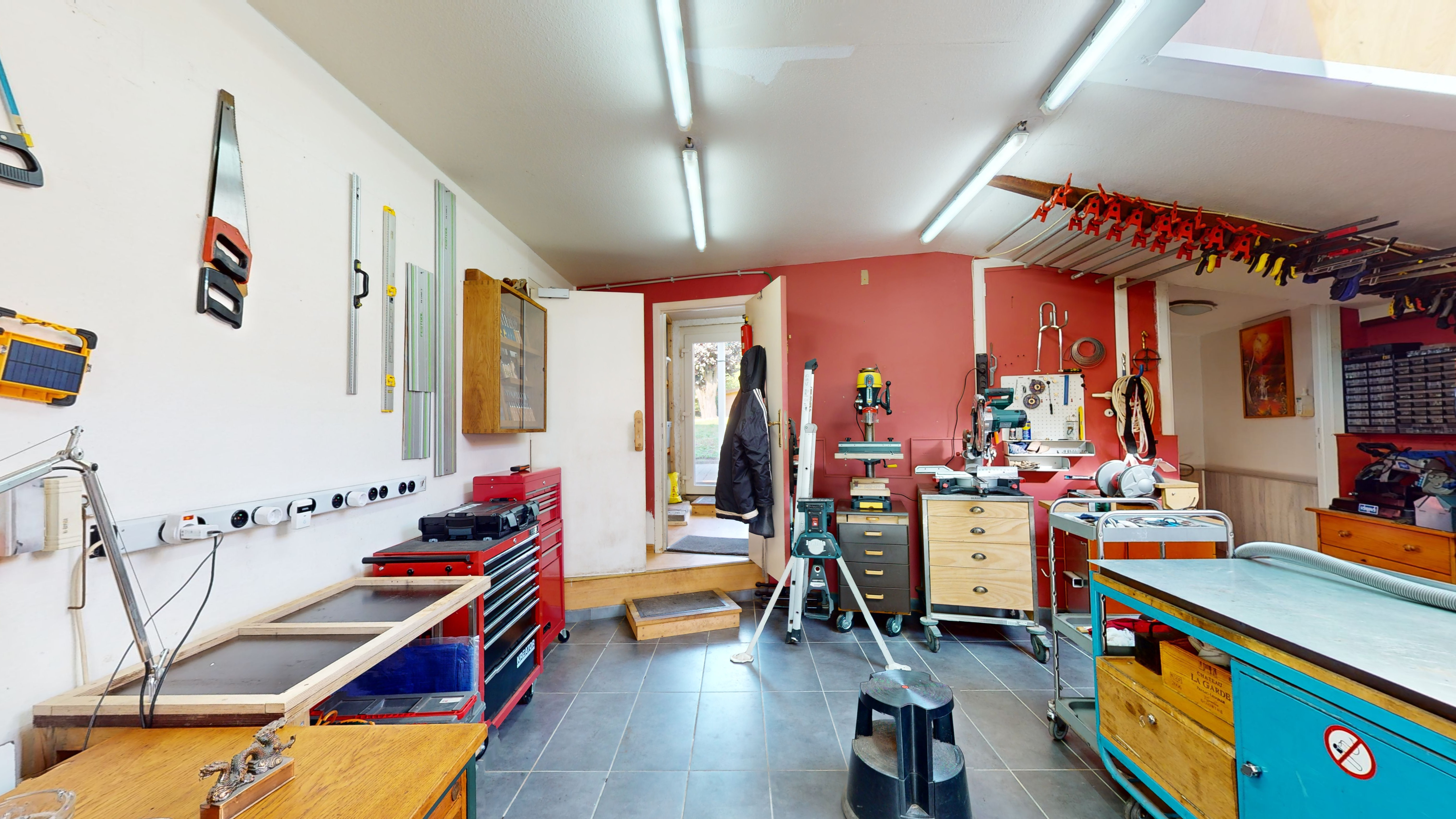 Maison unifamiliale 3 façades avec atelier et espace professionnel de (35m2) 4 chambres (possibilité 5) parking et grand jardin arboré.