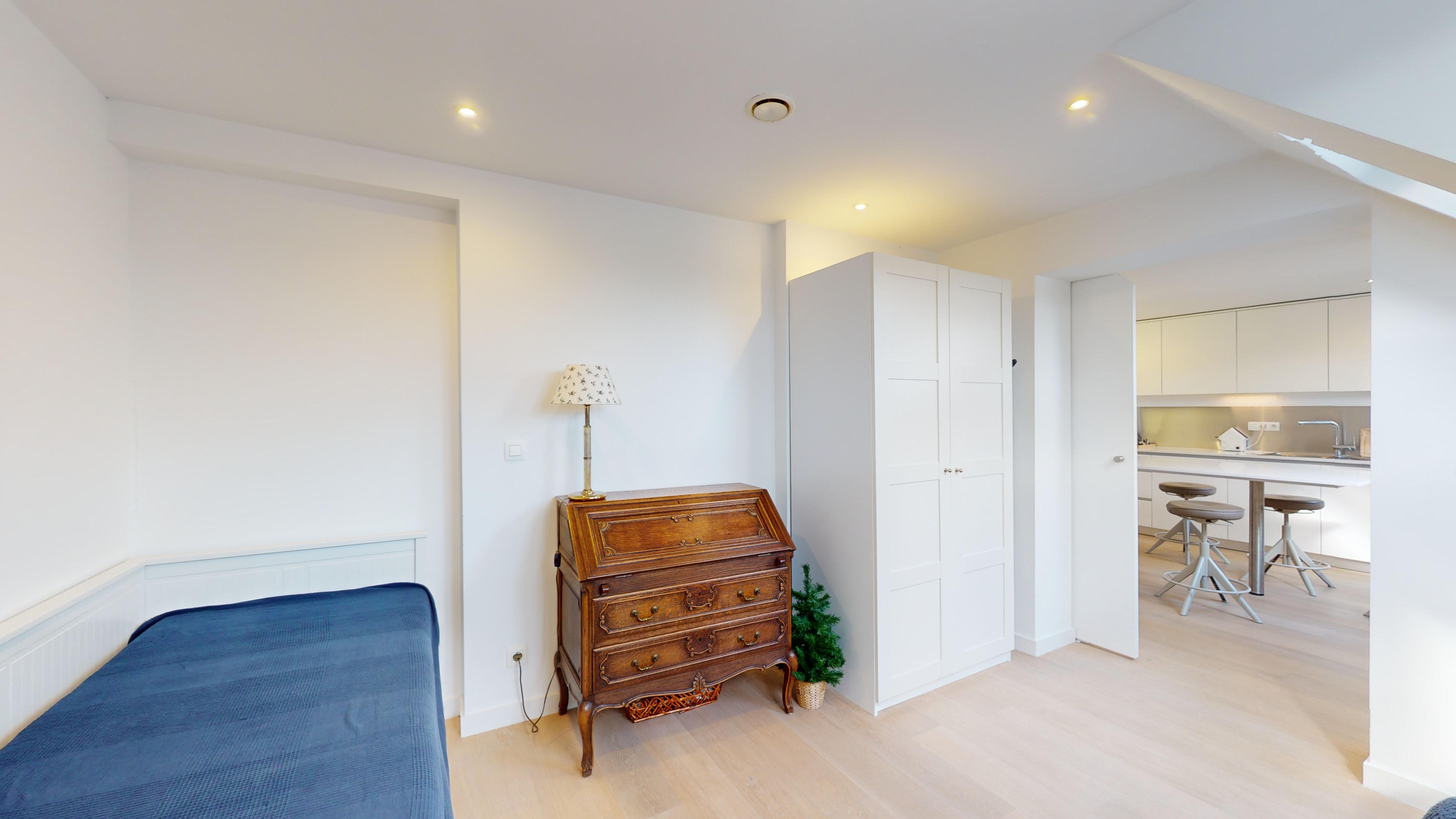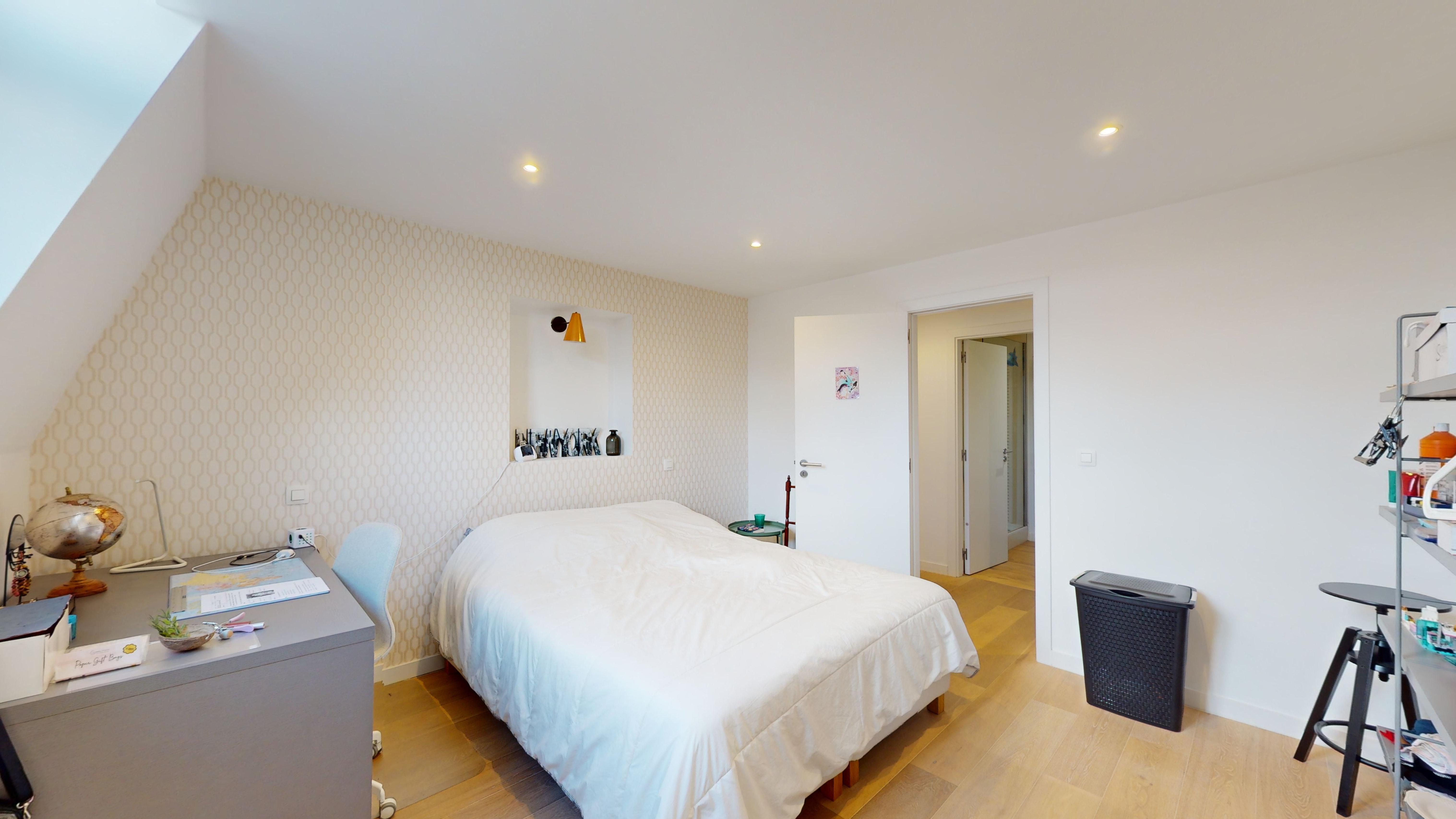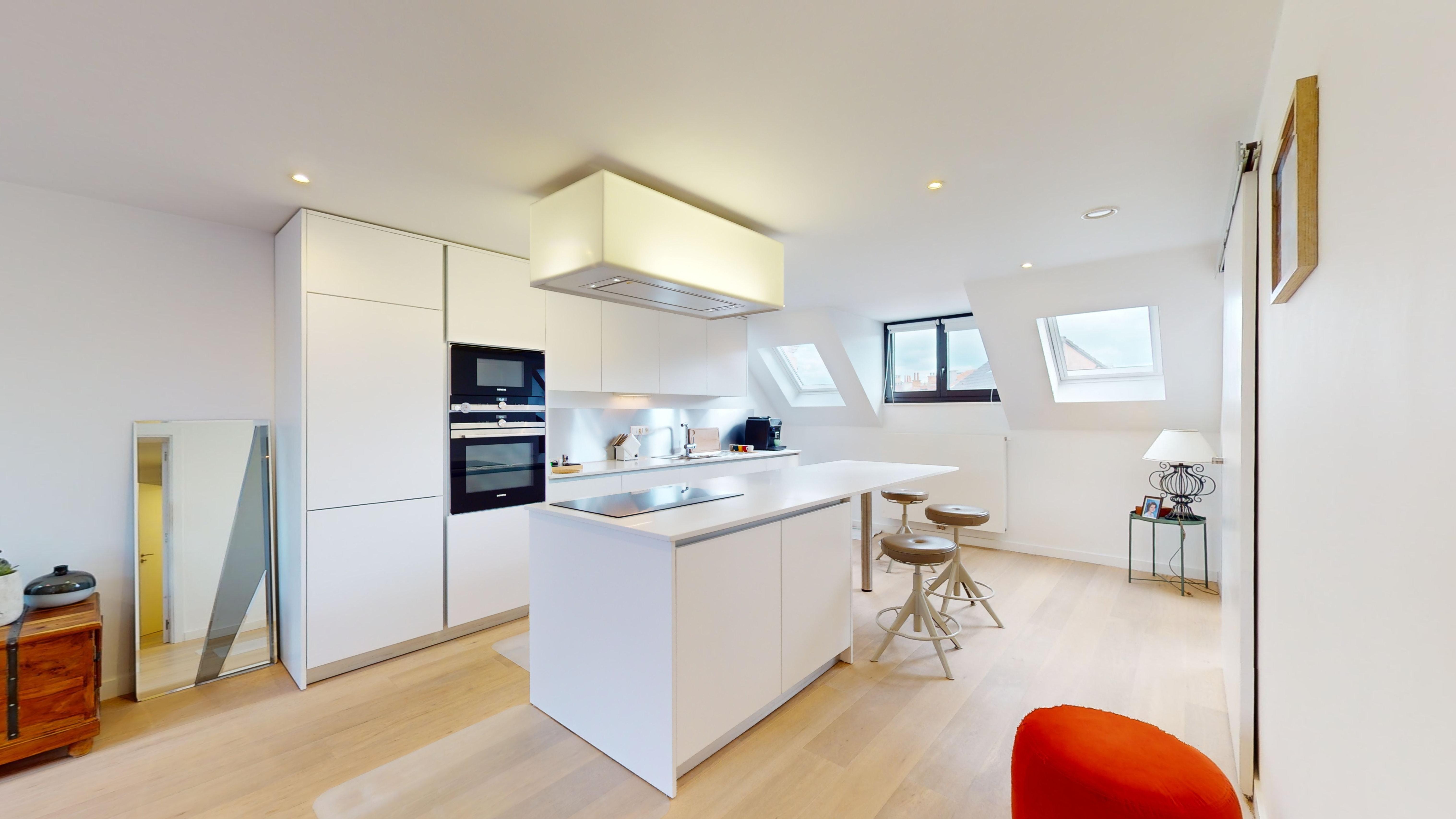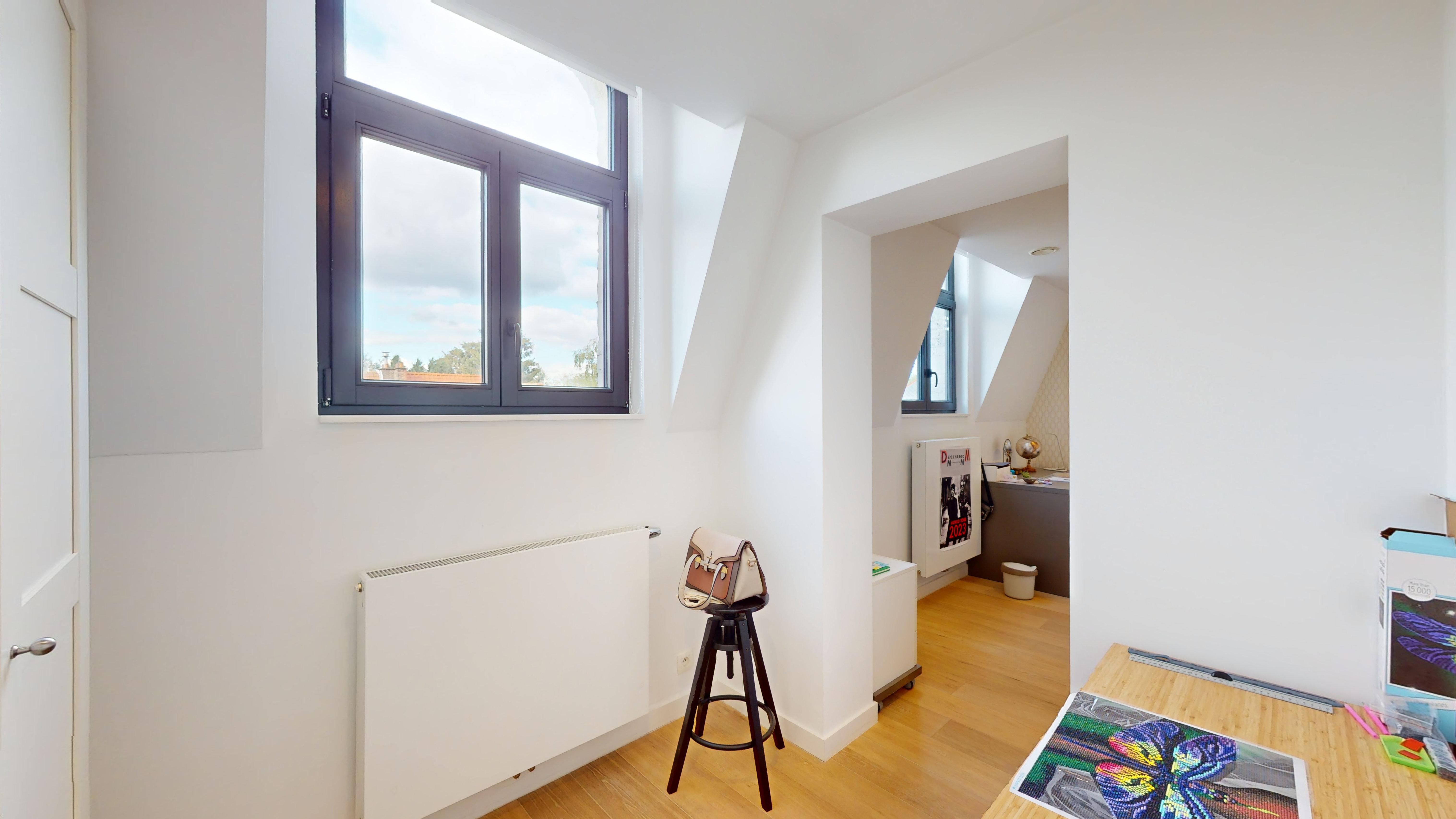 Situé sur la Chaussée de Louvain à Woluwe-Saint-Lambert, dans une petite copro de 3 unités, beau duplex complètement rénové en 2017 (comme l'ensemble du bâtiment) situé aux 2ème et 3ème étage sous toiture. Il se compose ainsi : entrée à l'entresol 1er/2ème avec vestiaire, seconde porte d'entrée au 2ème étage - hall d'entrée avec dégagement - chambre n° 1 - salle de douche et toilette séparée - séjour ouvert sur la cuisine de type américaine hyper équipée avec îlot central - pièce polyvalente pouvant servir de dining-room ou bureau ou 2ème chambre - Au 3ème étage : hall d'entrée, salle de bain et toilette séparée, dégagement/dressing et chambre n° 3. Parquet semi-massif au sol partout sauf pièces d'eau - mobilier sur mesure un peu partout - très bon état général - châssis double-vitrage - vidéophone - très bonne isolation thermique (PEB 'C') et acoustique.