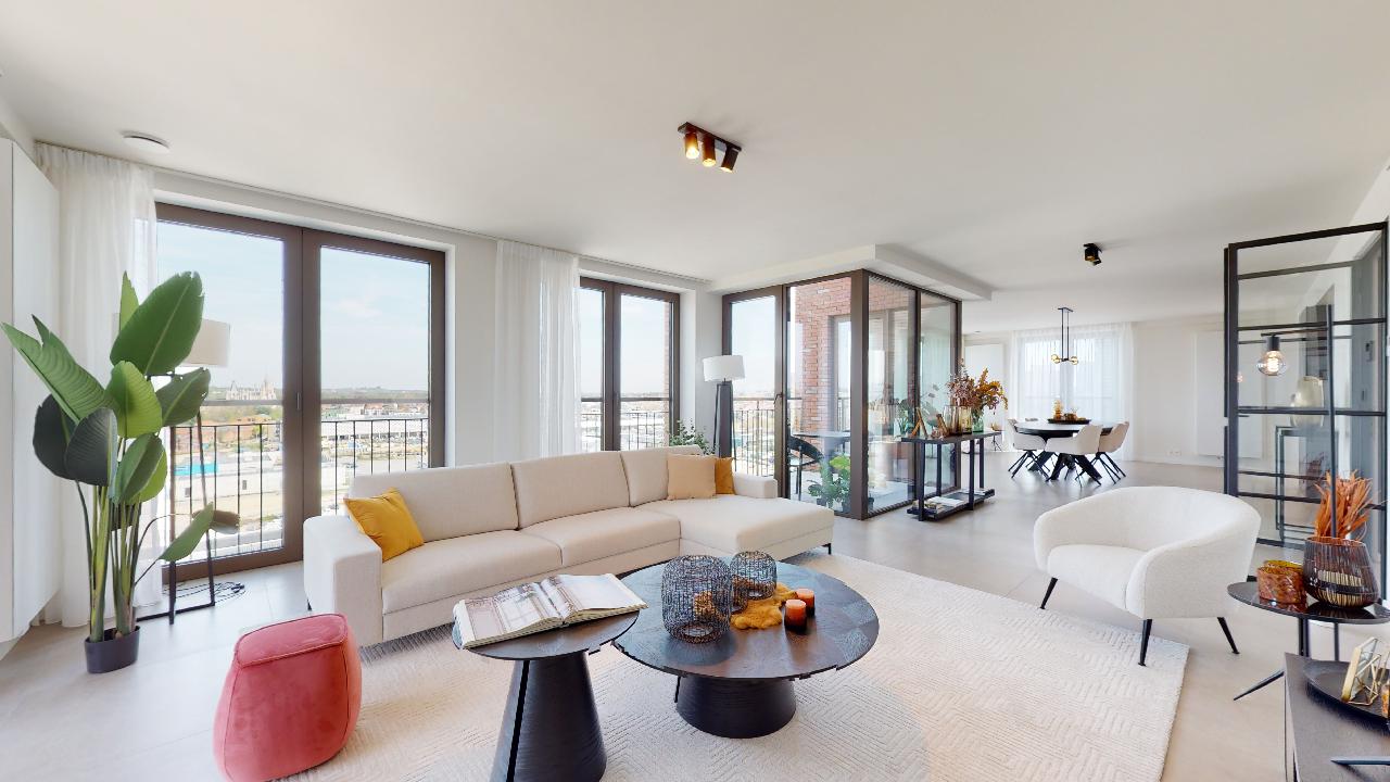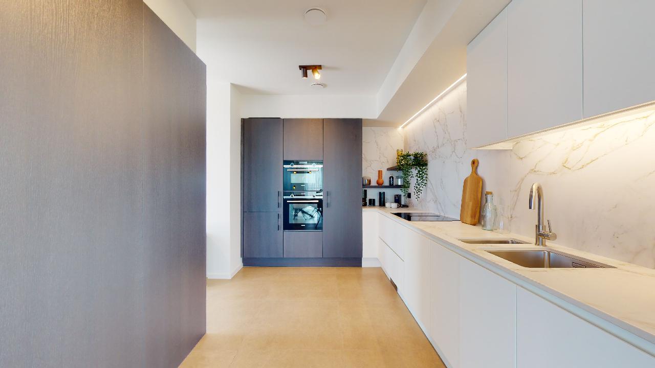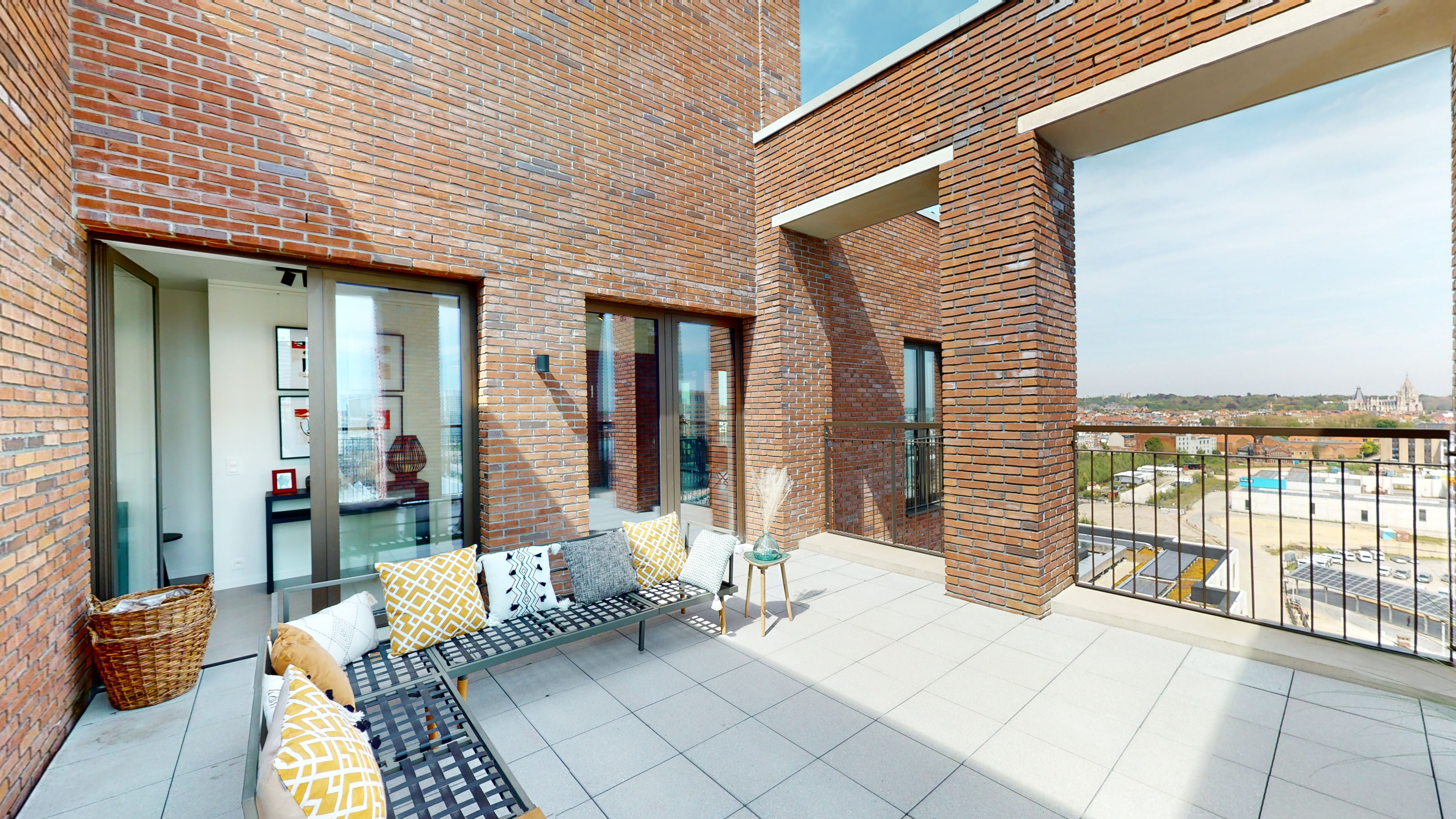 Splendide penthouse situé dans la résidence Brooklyn du projet Park Lane, sur le site extraordinaire de Tour&Taxis. Il dispose de deux chambres, d'un bureau, d'une salle de bain et d'une salle de douche. Ce penthouse à également deux belles terrasses offrant une vue panoramique sur Bruxelles