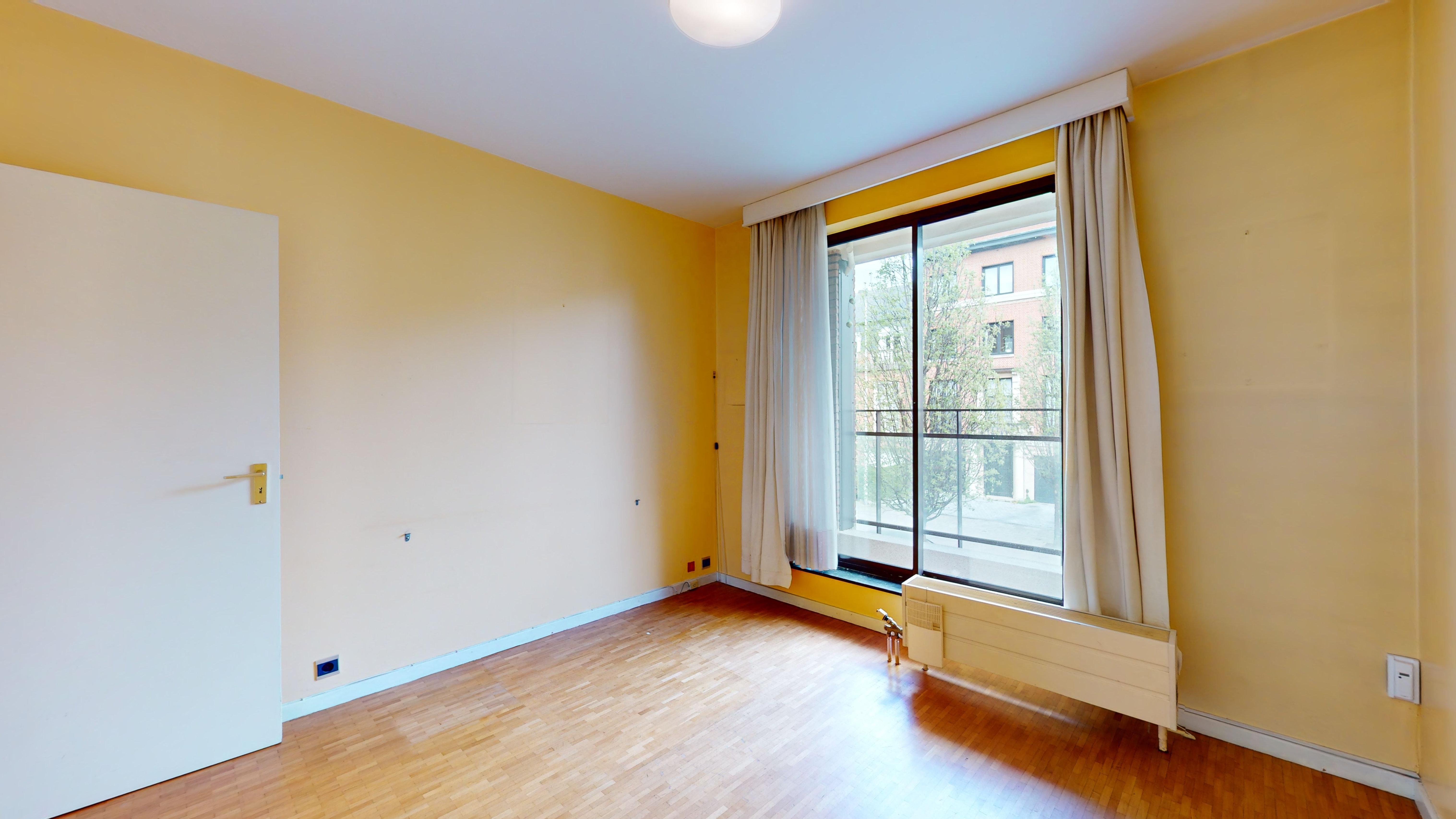 Situé dans le quartier tranquille et résidentiel de Georges Henri et à 15 min à pied du parc du cinquantenaire, by the way vous propose ce bel appartement à rénover de 123m2 (Selon PEB). L'appartement est situé au 1er étage sur 4 avec ascenseurs dans un bâtiment bien entretenu de 1979. L'appartement se compose comme suit : Hall d'entrée, une cuisine séparée, un grand séjour/salle à manger de 40m2, un Wc séparé, une première chambre (+/- 15m2) avec sa salle de bain (+/- 3m2 ), une autre chambre communicante à la première mais avec aussi sa propre entrée (+/- 11m2), une deuxième salle de bain (+/- 3m2) et une troisième chambre de +/- 11m2 avec accès au balcon de +/-3m2. L'appartement est libre à l'acte. Box obligatoire dans l'immeuble en supplément (+35.000 euros). Technique : PEB D+, châssis en alu double vitrage, électricité non-conforme et chaudière commune. Charges +/- 360 euros par mois sur base de 2022 (charges communes, chauffage et eau).