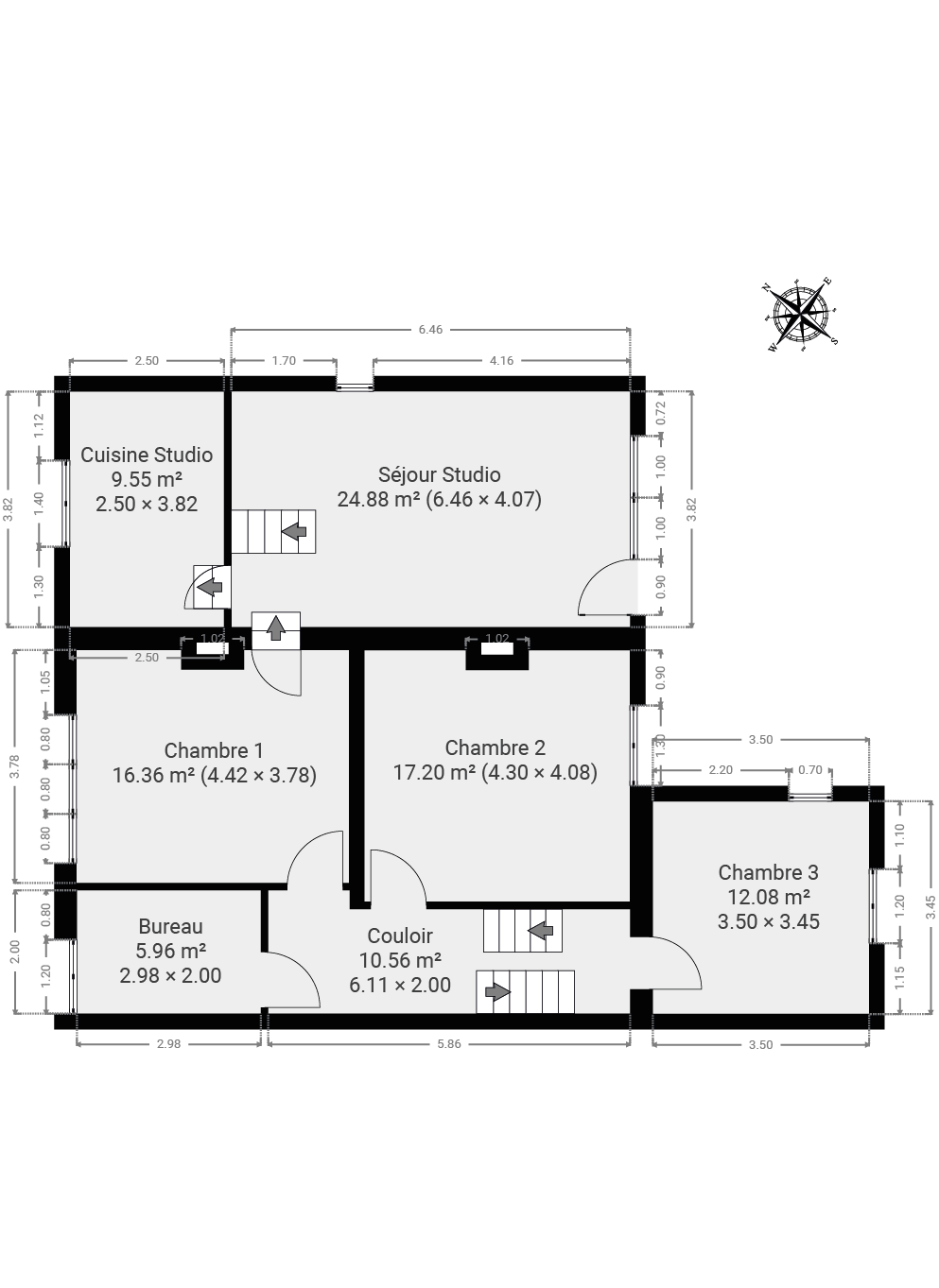 SURFACE TOTALE : 96.55 m² | SURFACE HABITABLE : 96.55 m² | PIÈCE(S) : 7