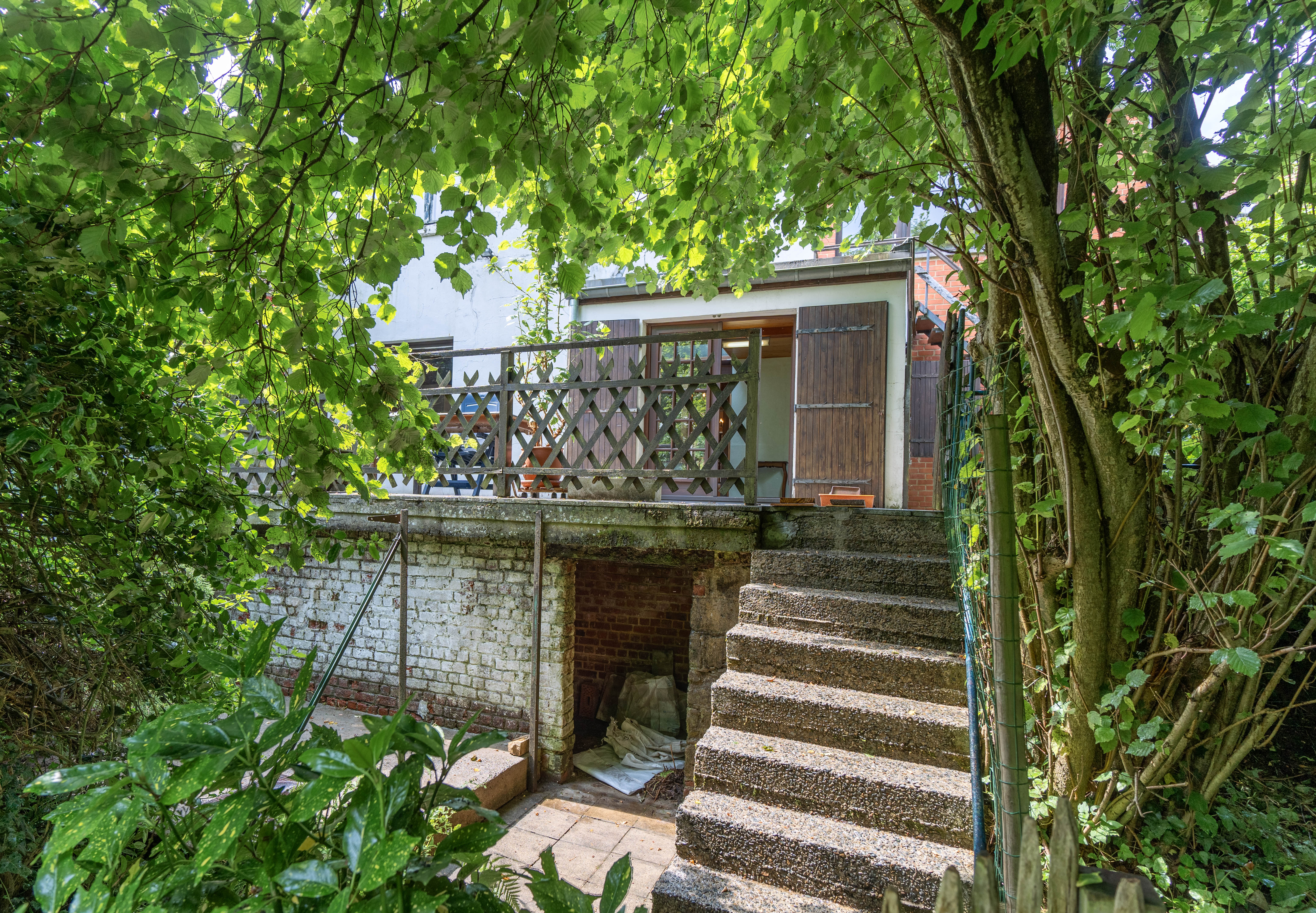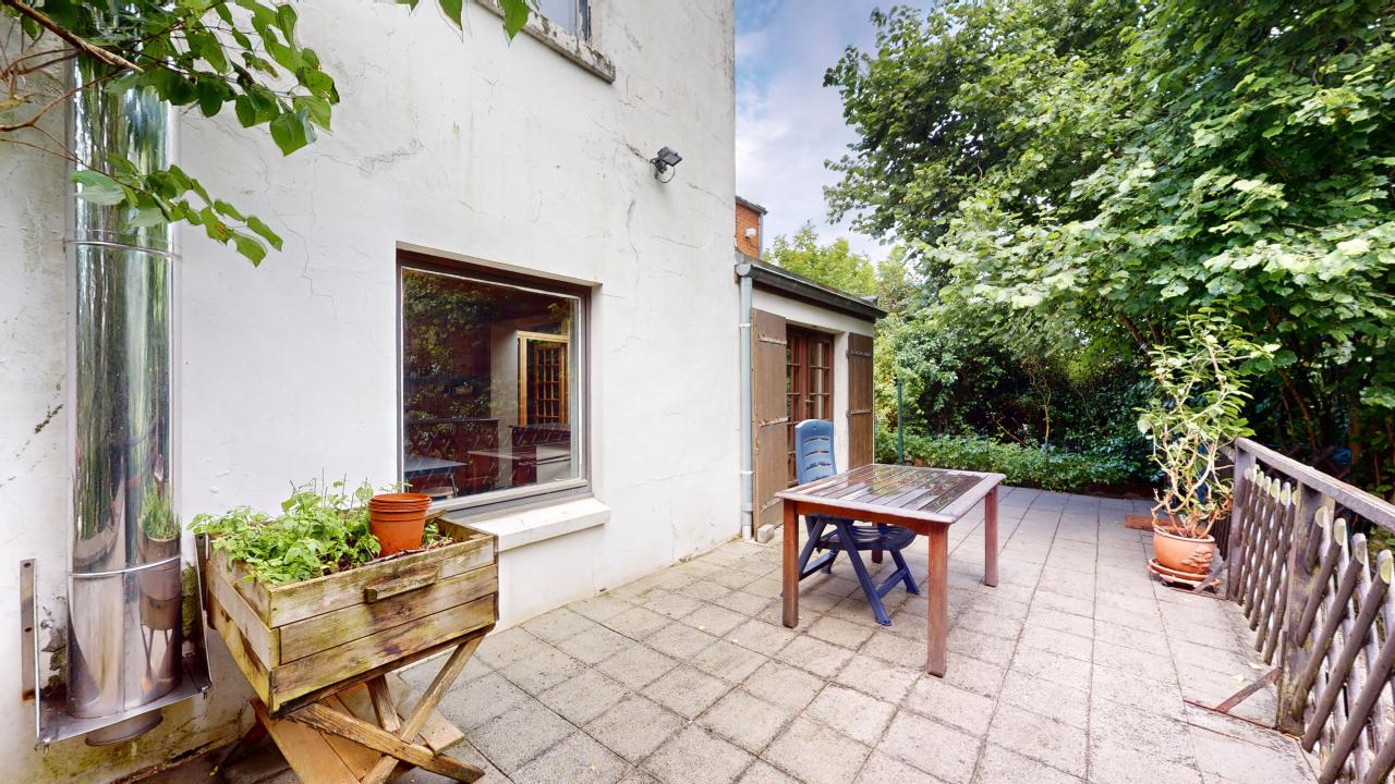 Idéale pour une grande famille, profession libérale ou investisseur ! Découvrez cette vaste maison à rénover, comprenant un studio indépendant (numéro de maison distinct). Derrière sa façade récente se cache une charmante demeure du début du 20ème siècle. Au rez-de-chaussée : le hall d’entrée s'ouvre sur un spacieux salon et une salle à manger, suivis par une cuisine conviviale équipée d’un poêle à bois et d’un coin repas. Cette dernière donne accès à une terrasse et un jardin orienté au sud, offrant une vue dégagée sans vis-à-vis. Un petit couloir depuis la cuisine mène à une salle de bain, le WC et un garage pour une voiture, avec quatre emplacements de parking extérieurs à l'avant. Entresol : une jolie chambre orientée vers le jardin. Au 1er étage : le hall de nuit dessert deux chambres et un bureau. Au 2e étage : Vous y trouverez une chambre, une salle d'eau et un grenier. Le studio indépendant : situé au premier étage et accessible par un escalier extérieur (ainsi que par l’intérieur), ce studio propose un séjour, une cuisine, une mezzanine/chambre, et une salle de bain avec WC. Informations Techniques : - Chaudière au gaz de 2009 - PEB G pour la maison et F pour l’appartement - Électricité non conforme - Raccordement à l’égout. Cette maison offre un potentiel exceptionnel, parfaite pour créer une résidence familiale unique ou pour un investissement locatif après rénovation.