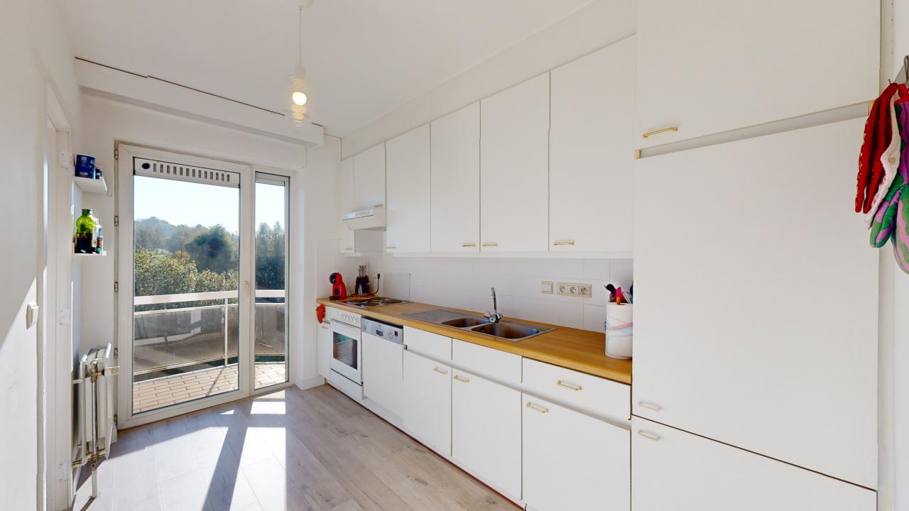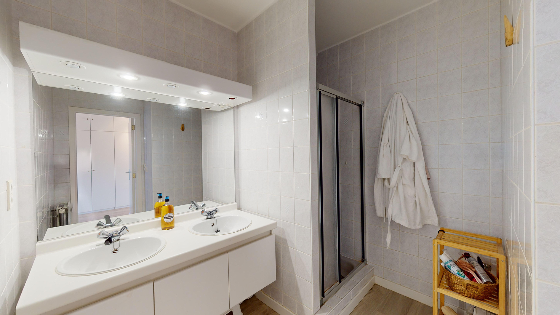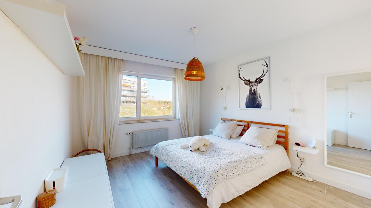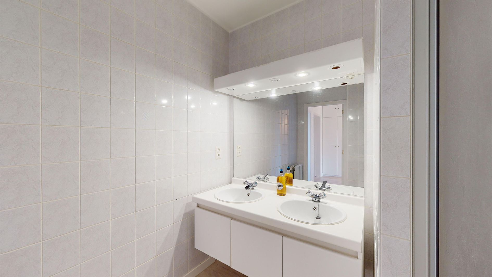 Bel appartement de +/- 100 m² situé au 5ème étage sur 6 d'un immeuble de 1991, acquis en 2020 et proposant : porte blindée, grand hall d'entrée, wc invité et grandes armoires encastrées, accès au living de 32 m² et cuisine de 8m² super-équipée donnant sur la terrasse de 11m² orientée sud-est (parasols + store solaire côté cuisine), buanderie attenante à la cuisine contenant aussi la chaudière individuelle gaz de 2011. En partie arrière, 2 belles chambres de 14,5 et 11 m² avec vue dégagée nord-ouest, grande salle de douche (5,5m²) avec double vasque. Revêtement sol : parquet flottant 'Quick-step' couleur chêne blanchi en très bon état partout (2020) et carrelage dans les pièces d’eau. Châssis DV dont un nouveau dans le living. Cave de 3 m² comprise. PEB ‘A’ (95 kWh/m²/an) – Electricité conforme – R.U. en attente. Très bon état général et peu de frais à prévoir. Prix demandé : 349.000 € avec, en option, le garage-box fermé de 15m² au prix de 33.000 €.