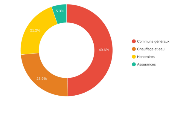 Ce tableau des charges comprend : Communs généraux et privés – Appel de fonds – Nettoyage et entretien - Assurances – syndic – frais de gestion