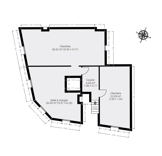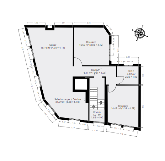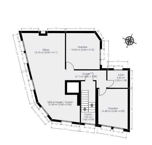 SURFACE TOTALE : 91.59 m² | SURFACE HABITABLE : 91.59 m² | PIÈCES : 3