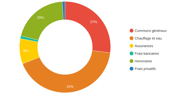 Ce tableau des charges comprend : Communs généraux – Chauffage et eau – Honoraire - Assurances – frais bancaires et frais privatif